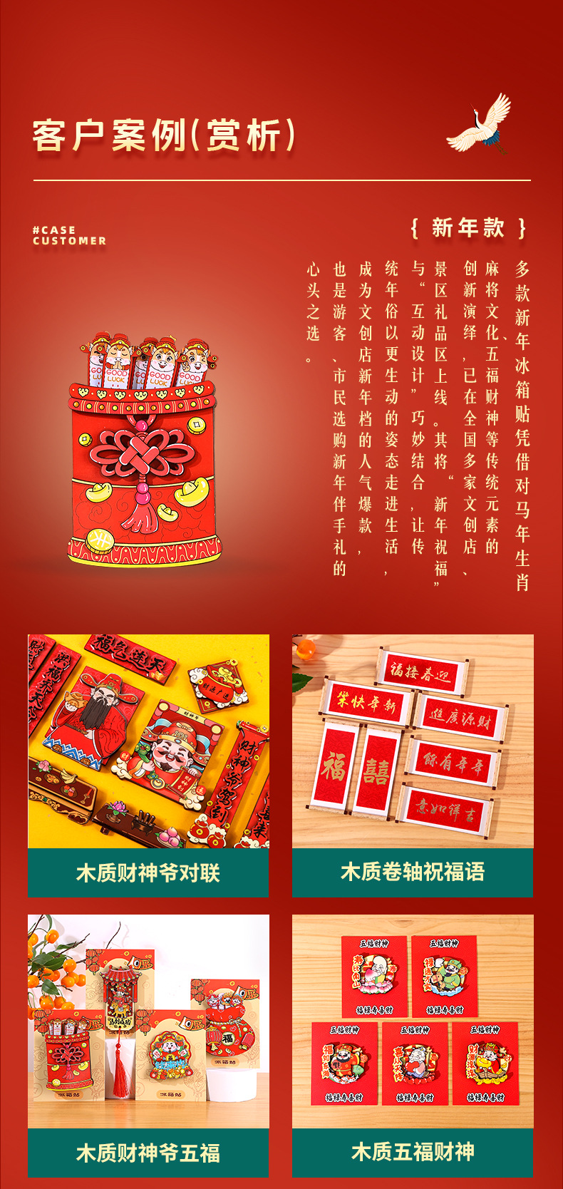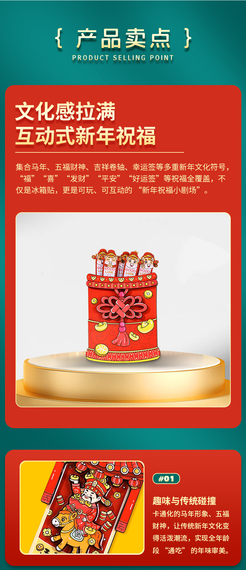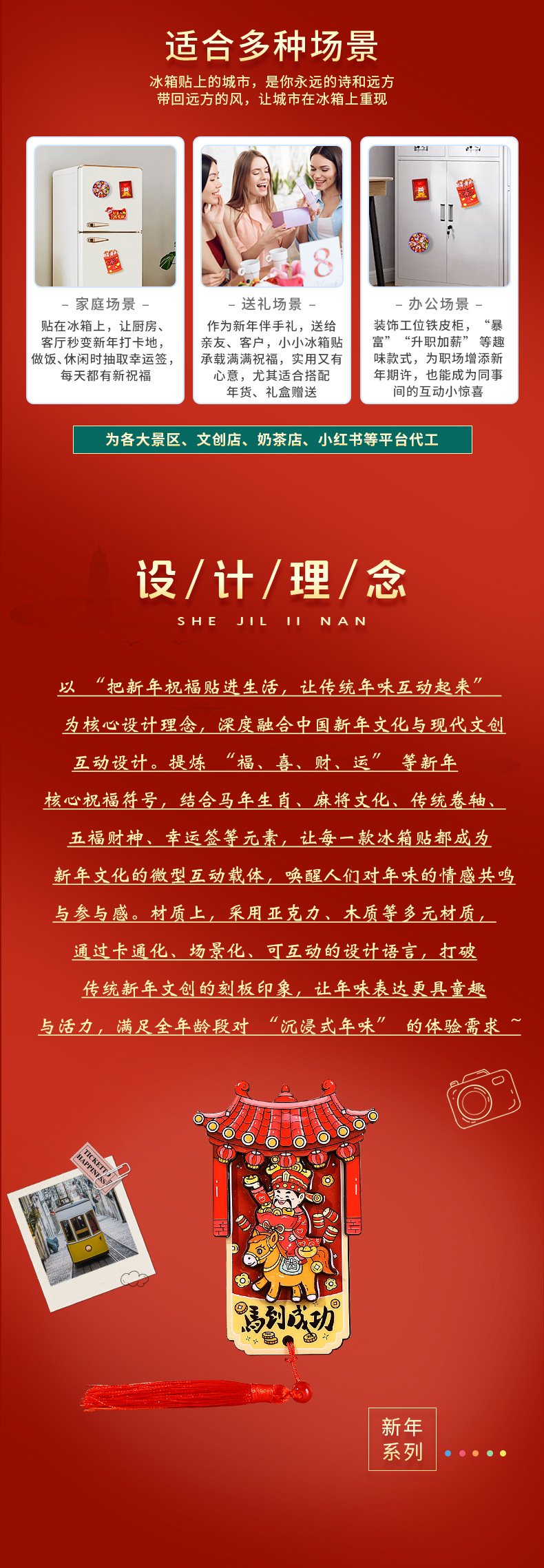 国潮系列五福吉祥金蛇献财木质滴胶冰箱贴文创礼品磁性工艺品现货