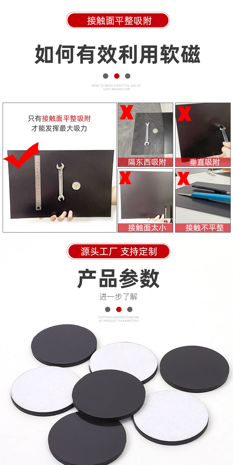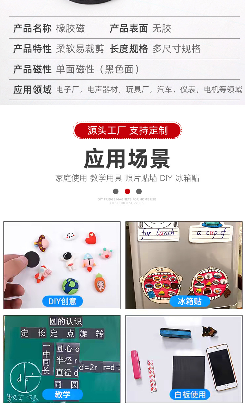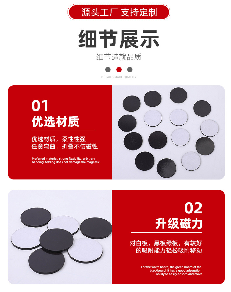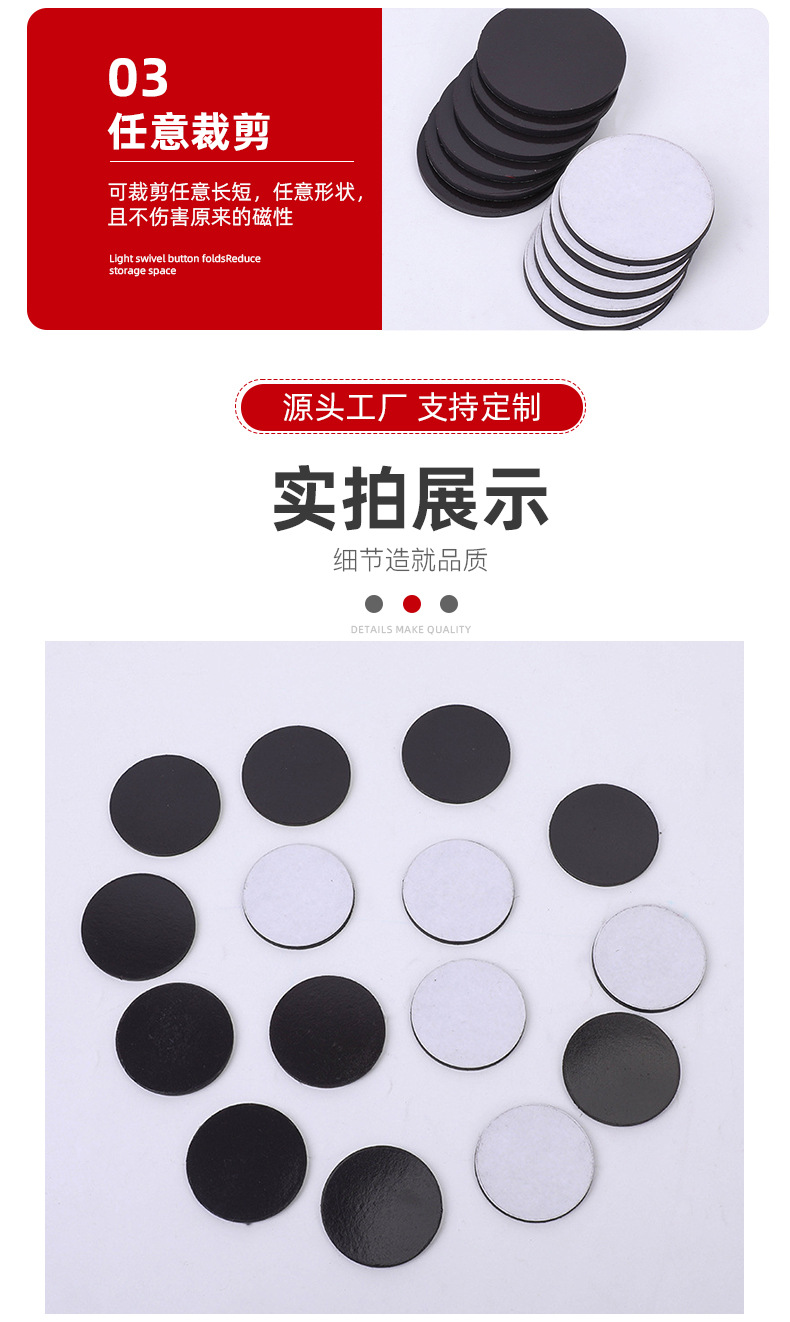 圆形磁性贴D42*3单面背胶冰箱软磁贴磁条教学教具黑板磁力贴磁片