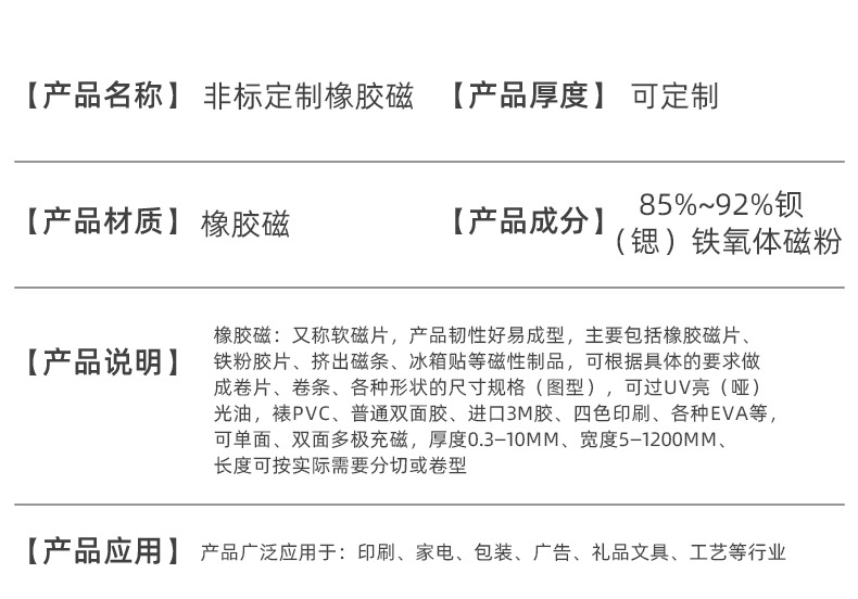 磁力加厚橡胶磁铁强力背胶自粘软磁片方形磁力橡胶冰箱吸铁石超强