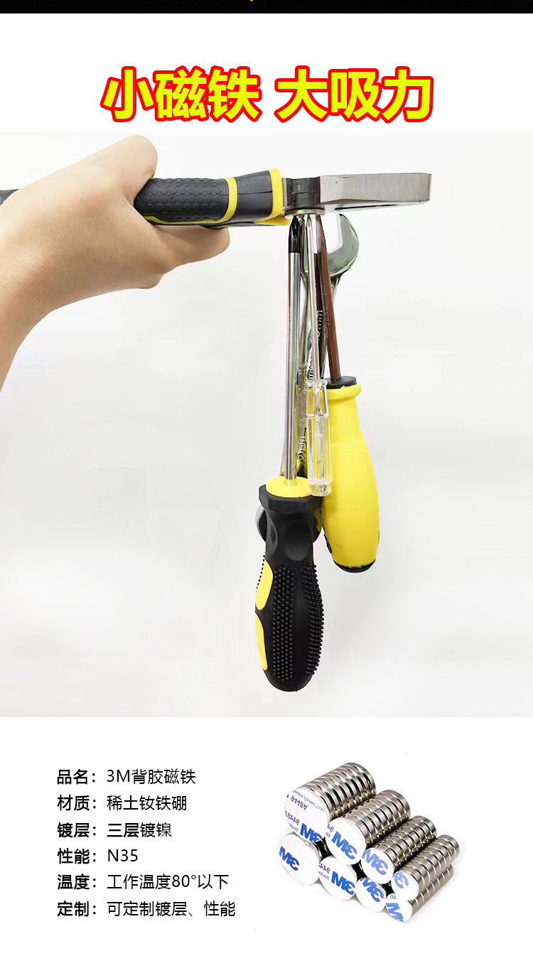 磁铁片强磁带背胶方形冰箱贴磁吸片有背胶圆形磁铁强力小圆片