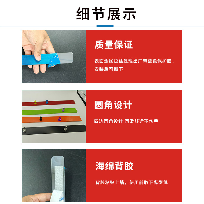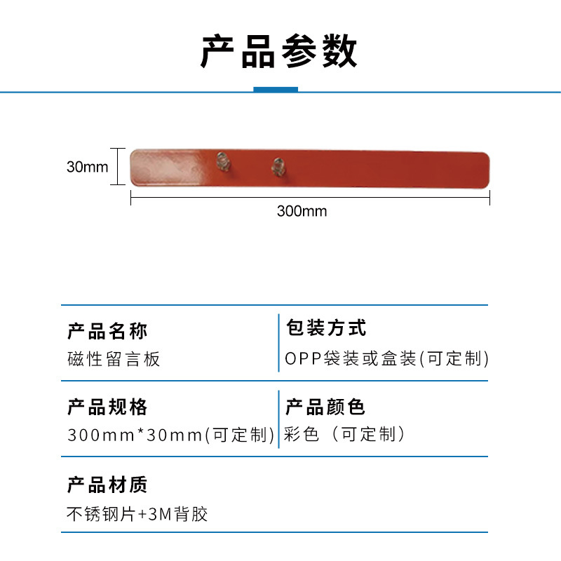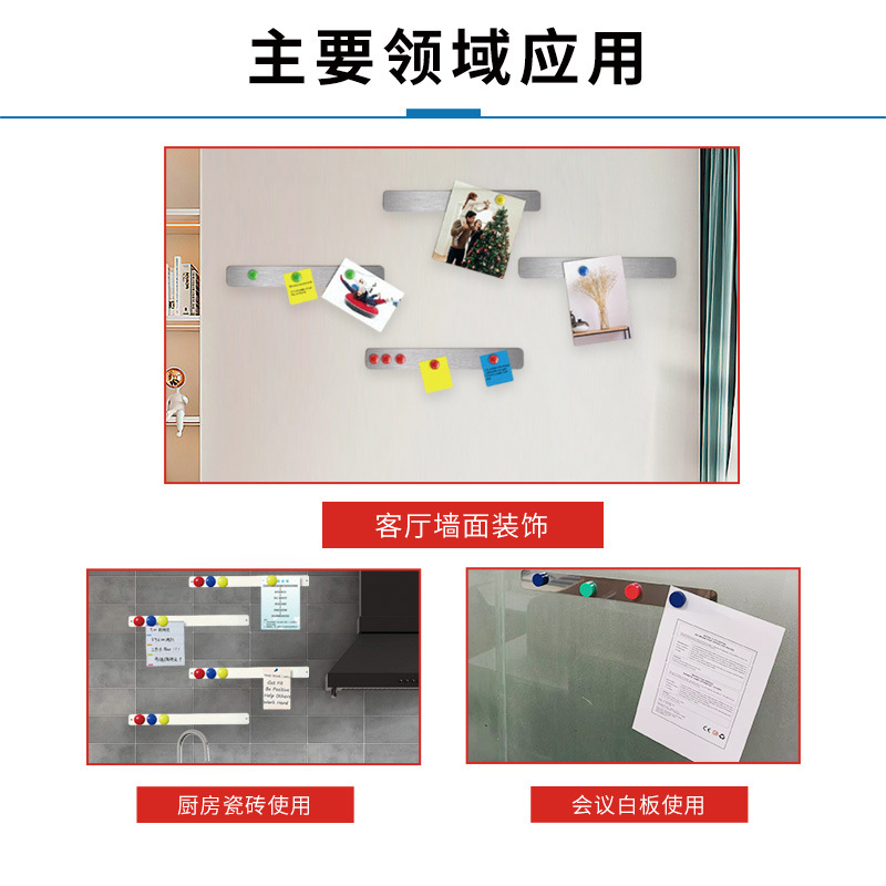 跨境磁性办公留言板冰箱贴金属条300*30引磁片不锈钢自带背胶公告