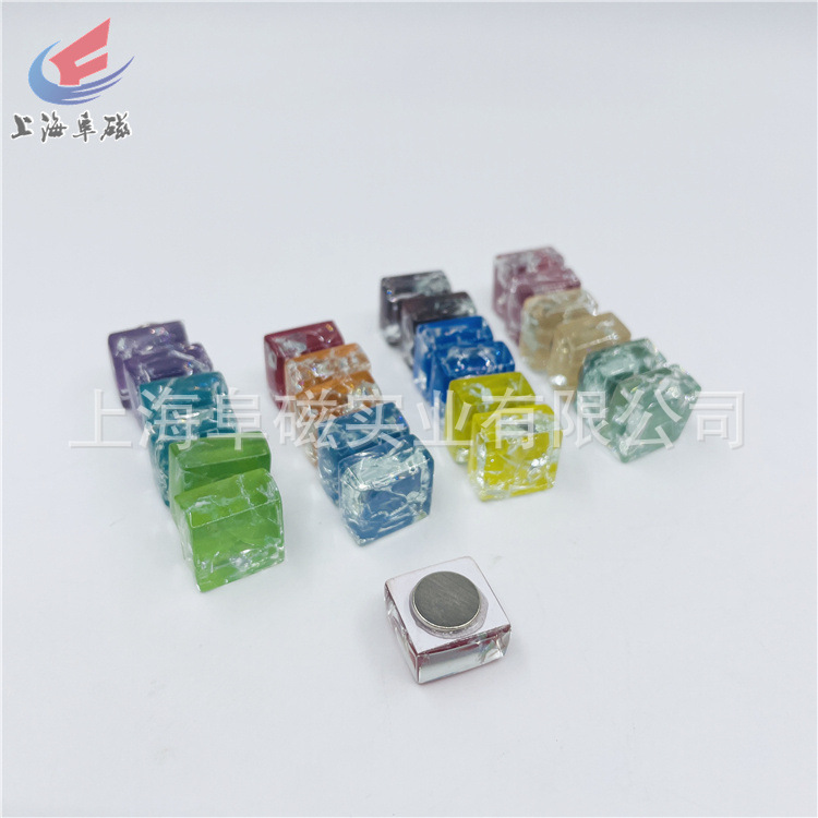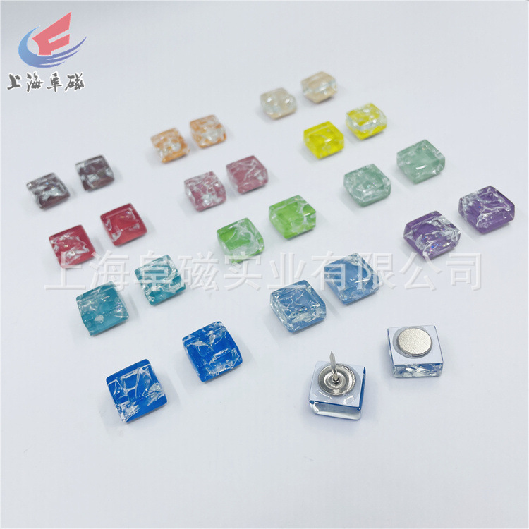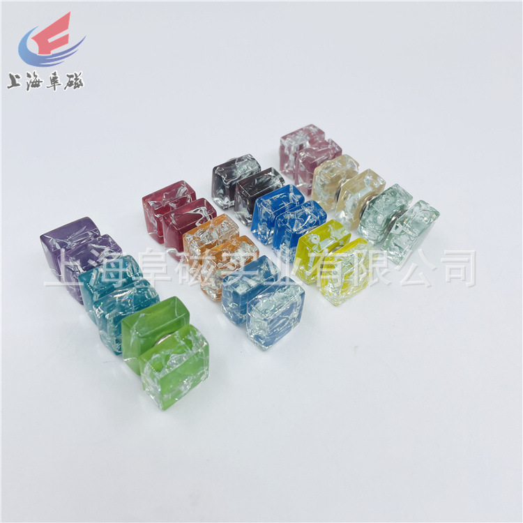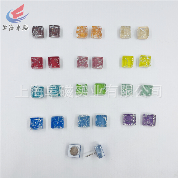 冰裂款 马赛克12色水晶玻璃冰箱贴 磁铁 15*15mm 24个一套 磁扣