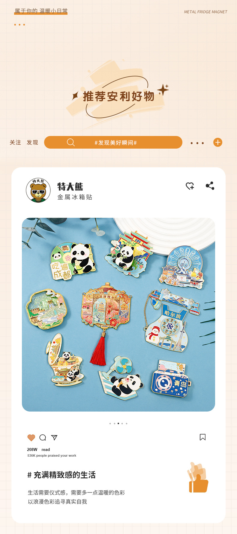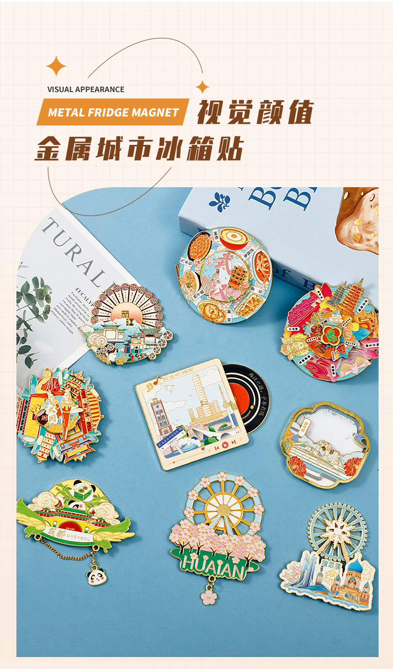 成都系列金属城市冰箱贴中国旅游景点纪念品冰箱贴3D立体磁贴批发