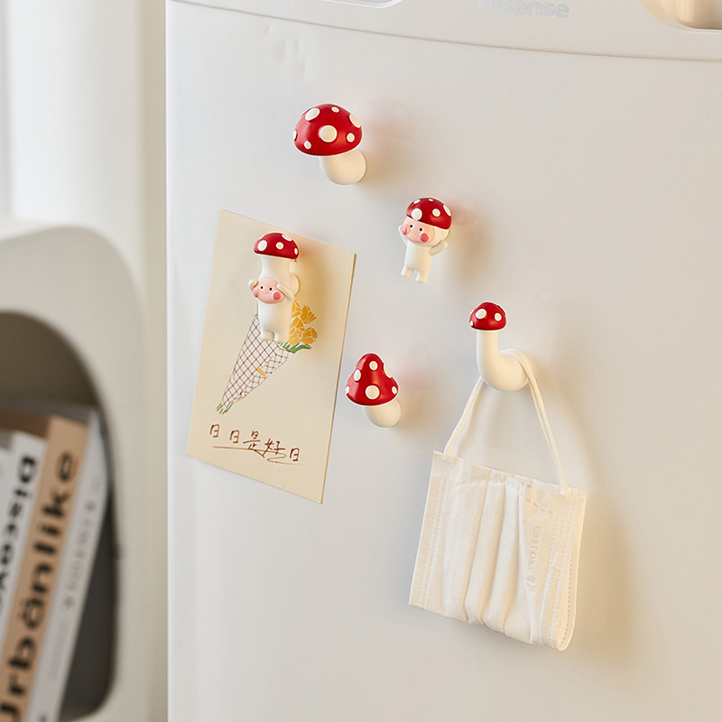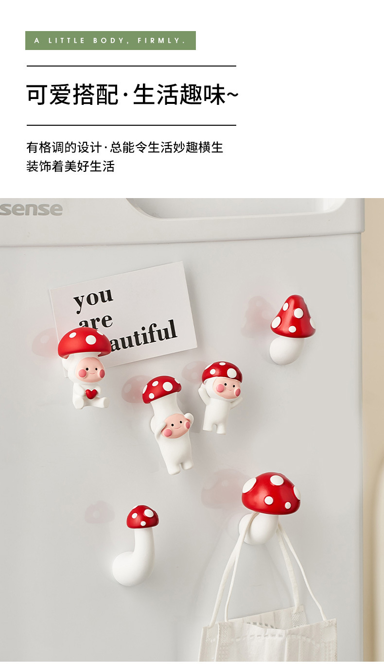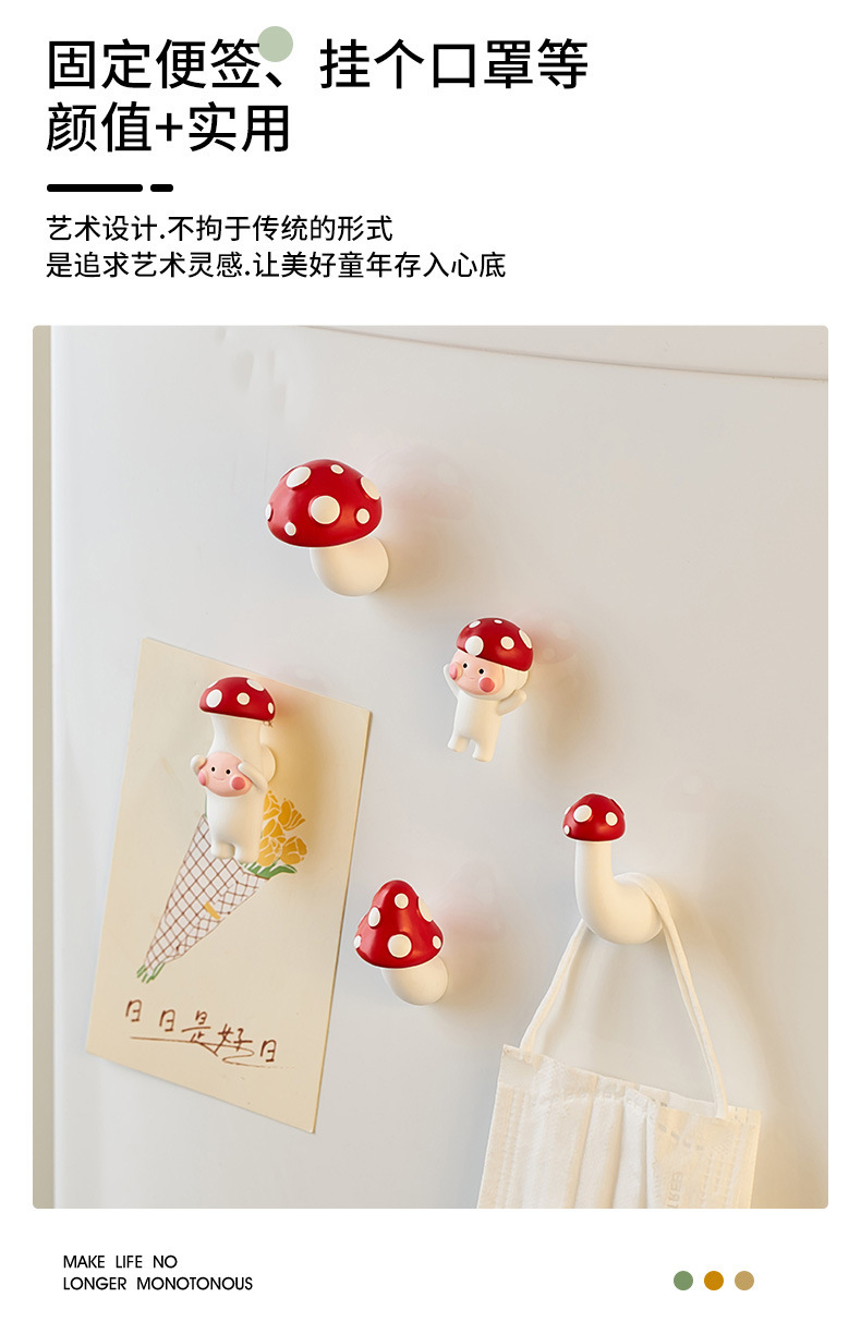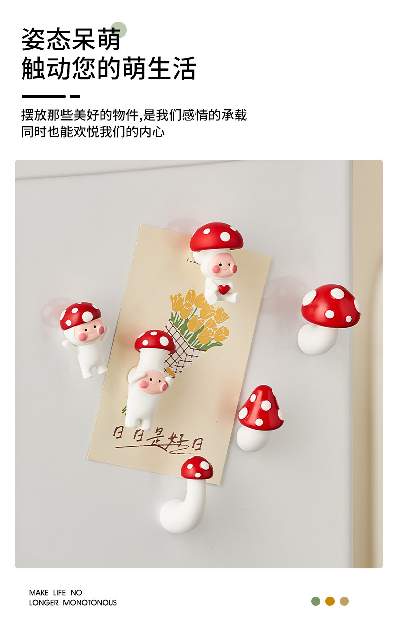 网红冰箱贴磁吸挂钩家居3D立体蘑菇留言板多功能立体树脂玩具装饰