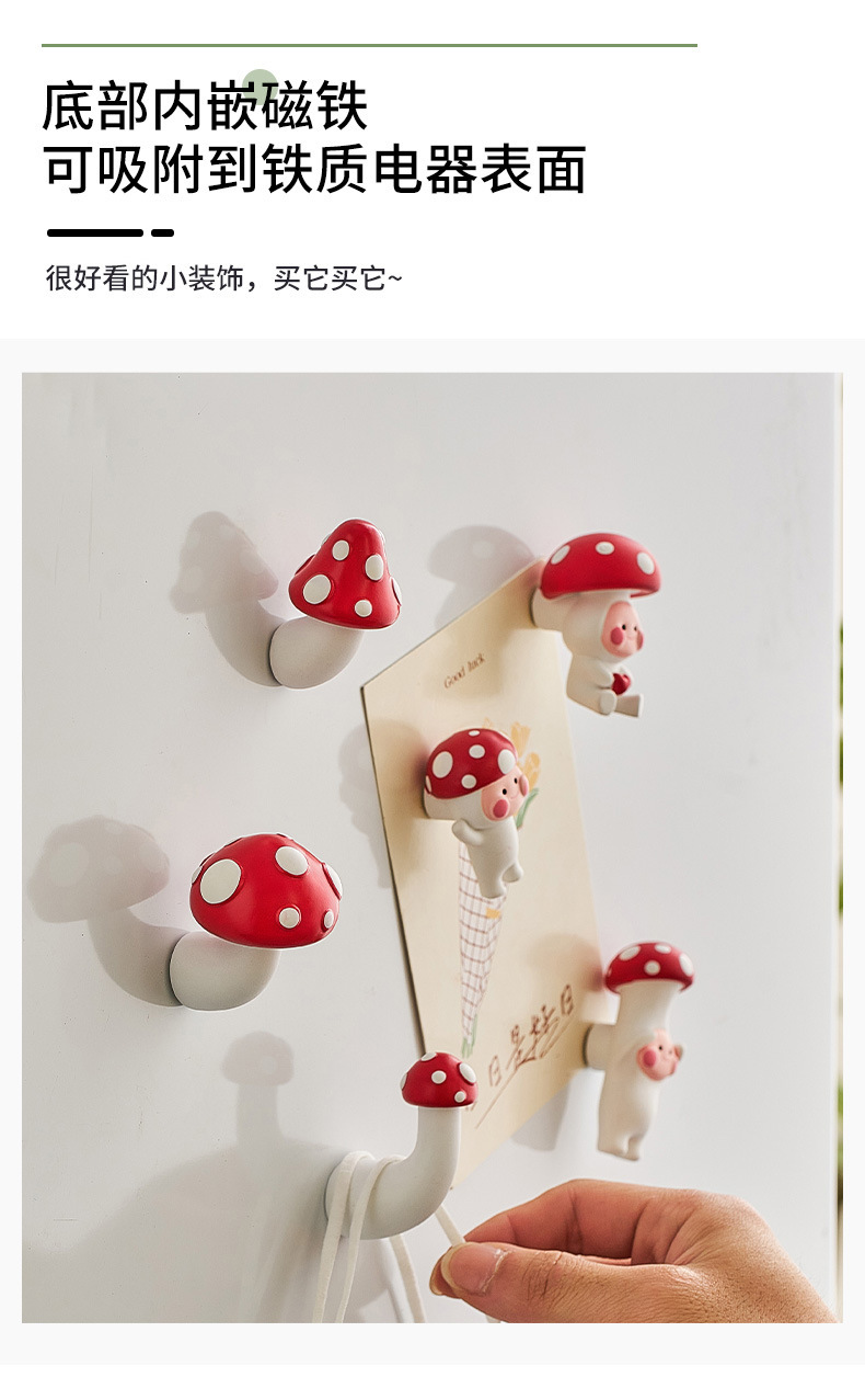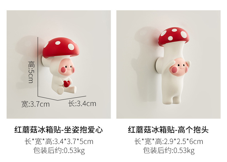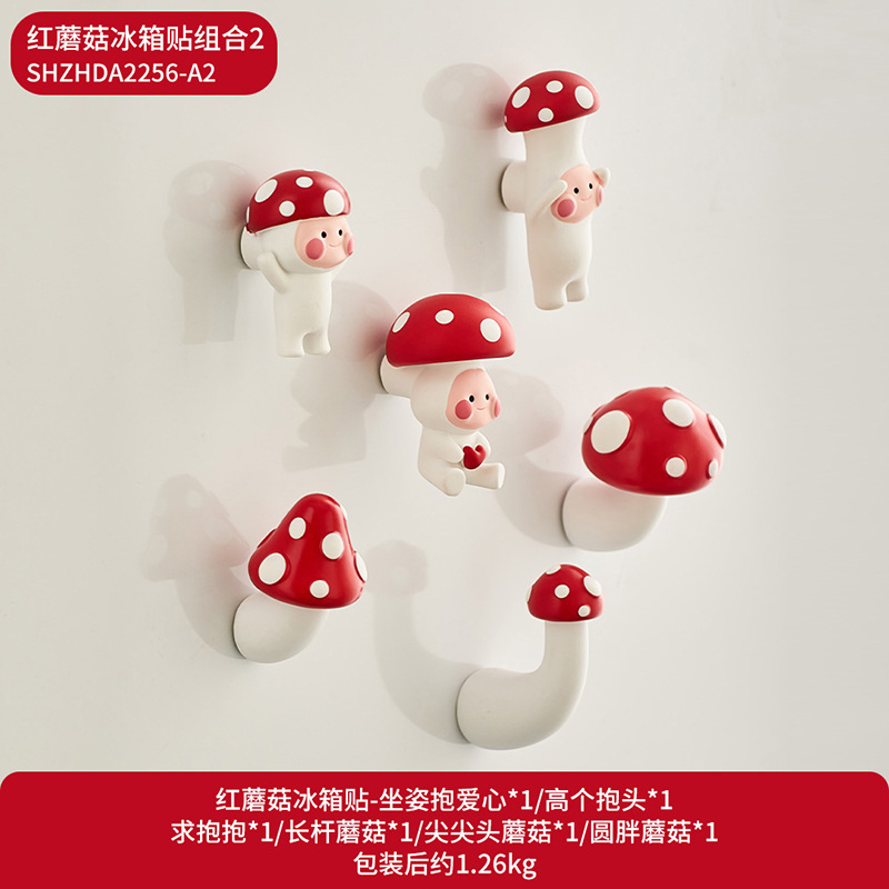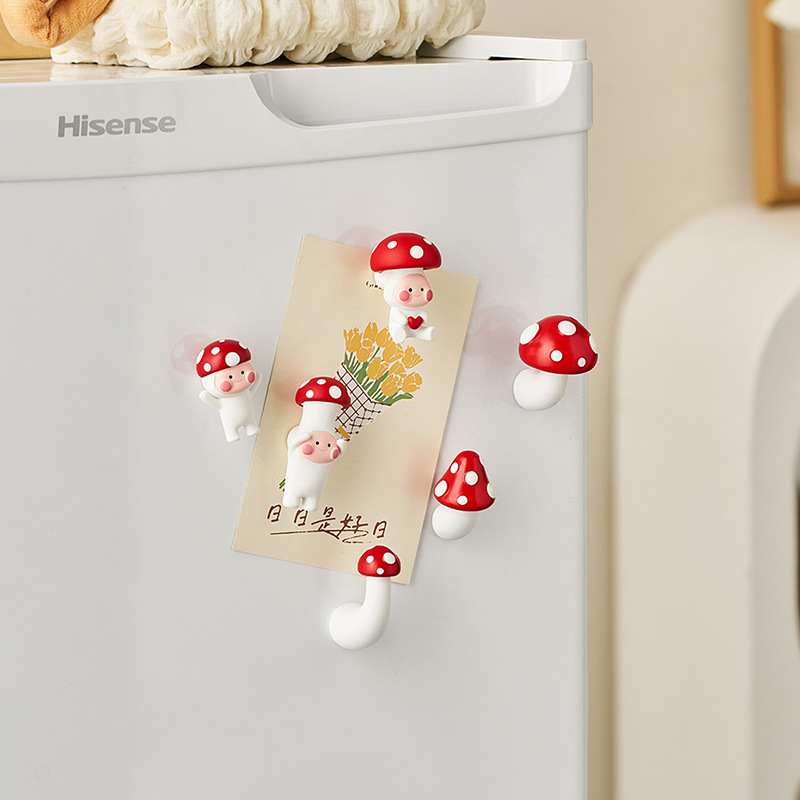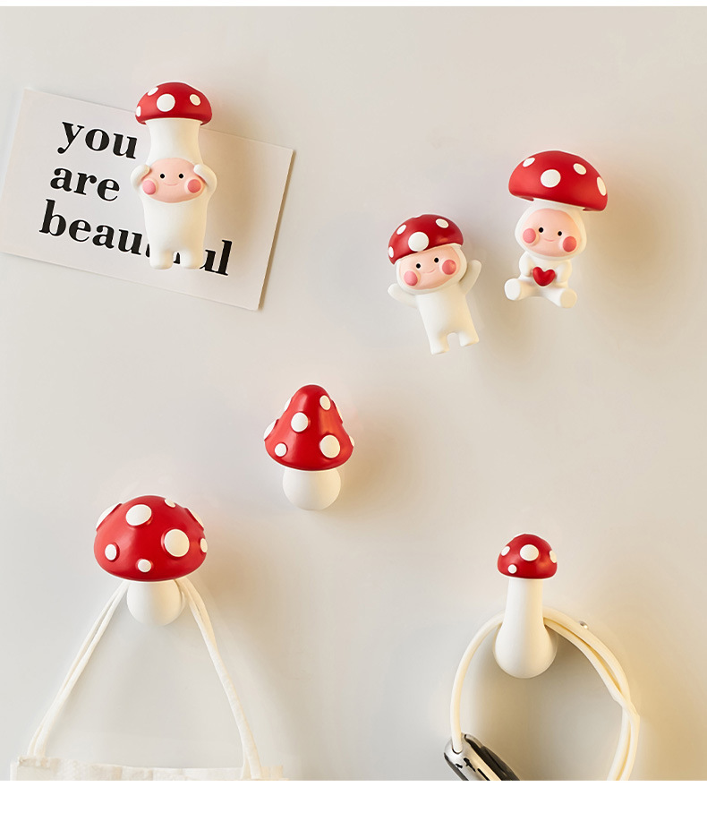 网红冰箱贴磁吸挂钩家居3D立体蘑菇留言板多功能立体树脂玩具装饰