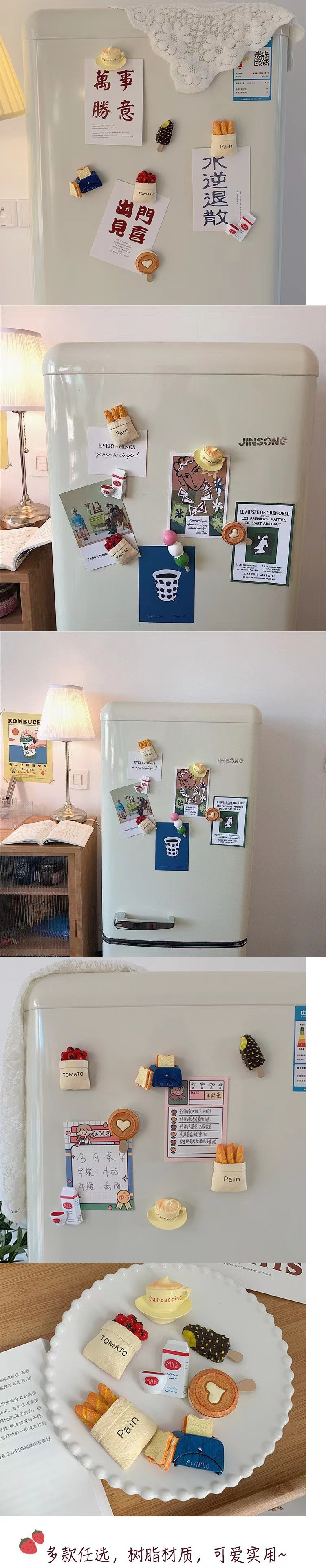 风ins美食冰箱贴3D立体性装饰鸡蛋面包创意磁性贴跨境代发