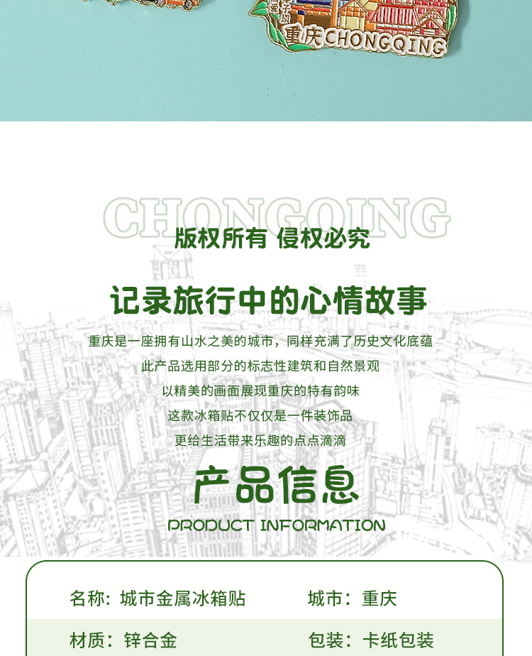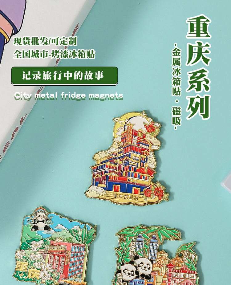 重庆冰箱贴李子坝洪崖洞景区纪念品3d立体旅游城市文创金属磁吸贴