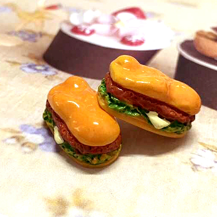 DIY树脂圆形汉堡配件微缩食玩盲袋迷你超市食物冰箱贴模型玩具-G3