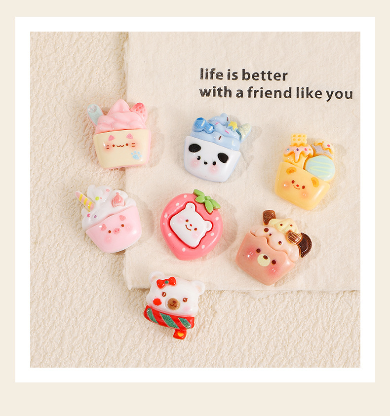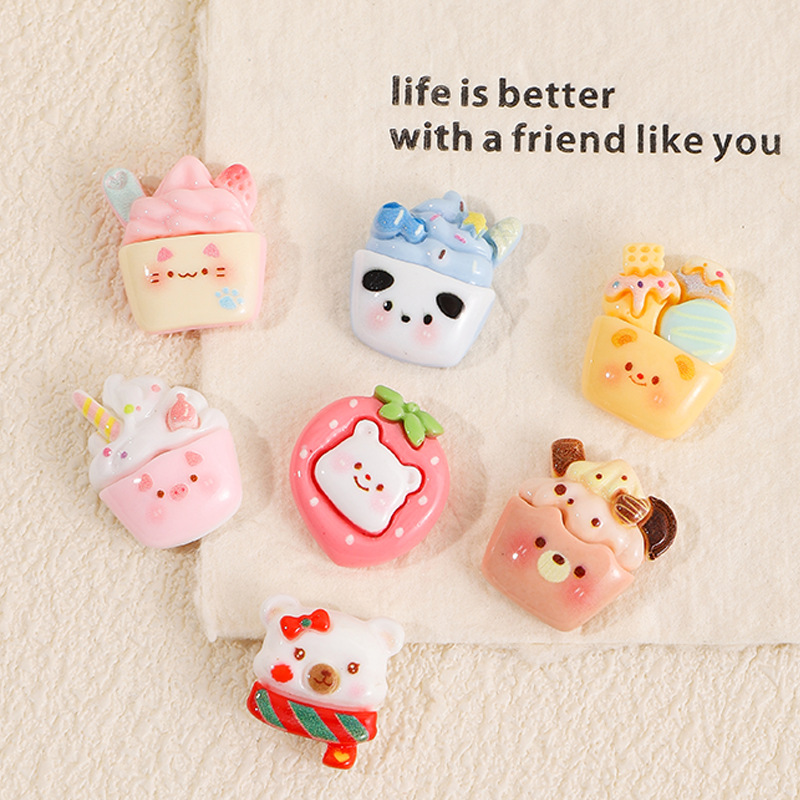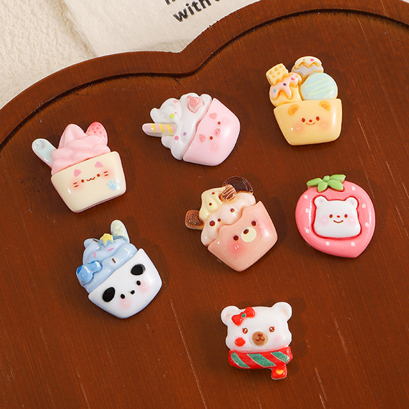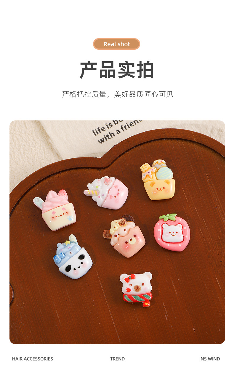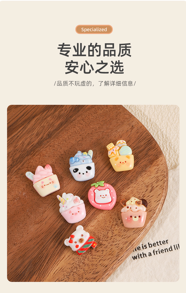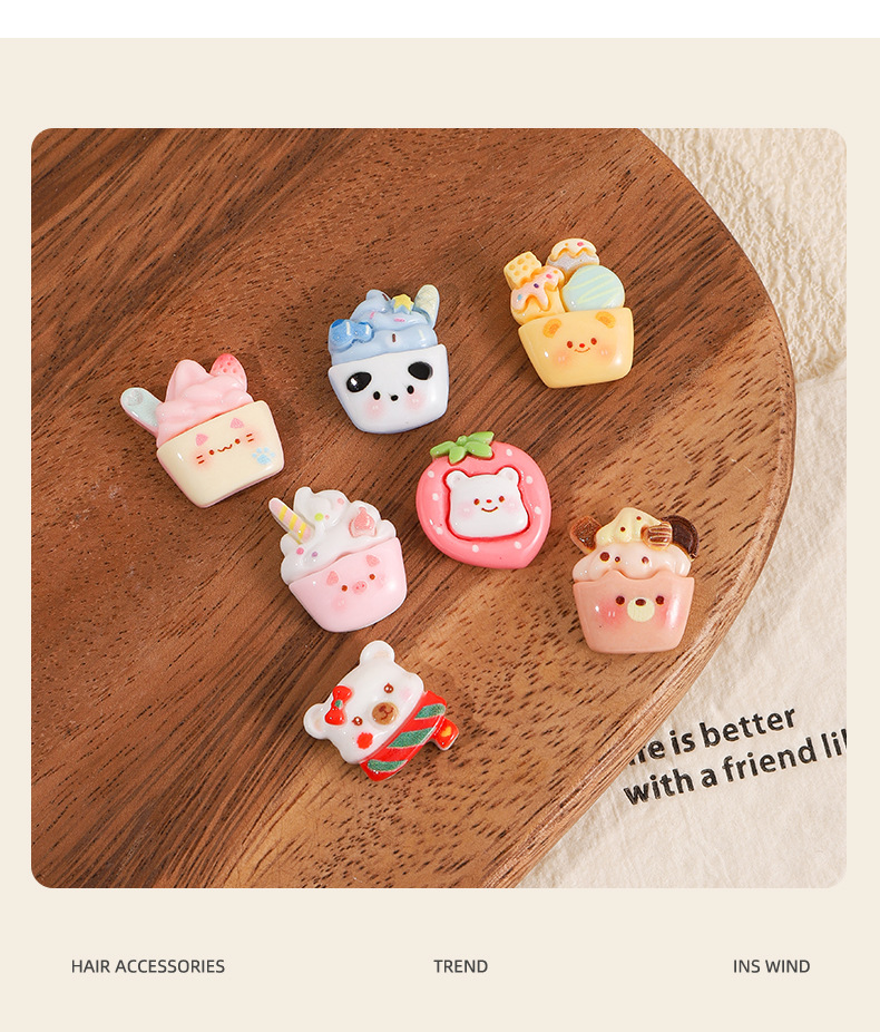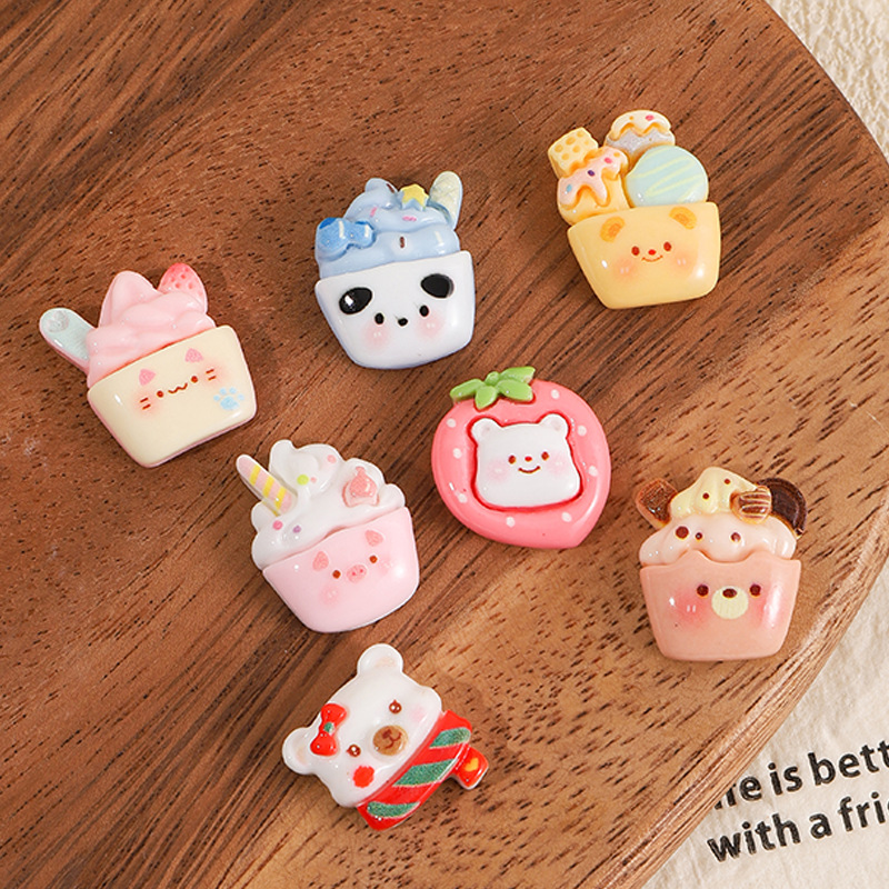 卡通动物冰激凌食玩树脂小配件diy奶油胶水杯冰箱贴洞洞鞋扣配件