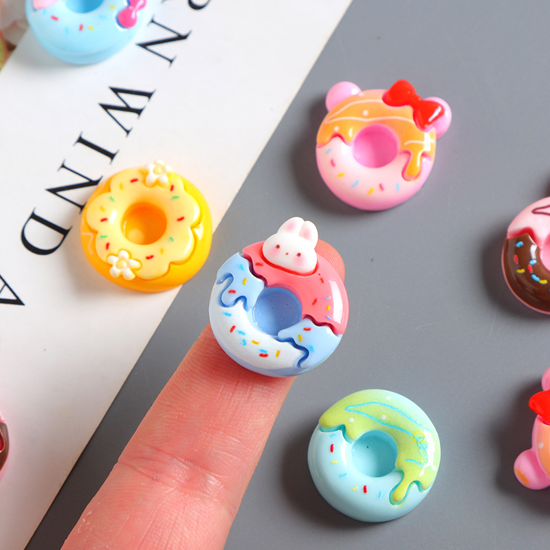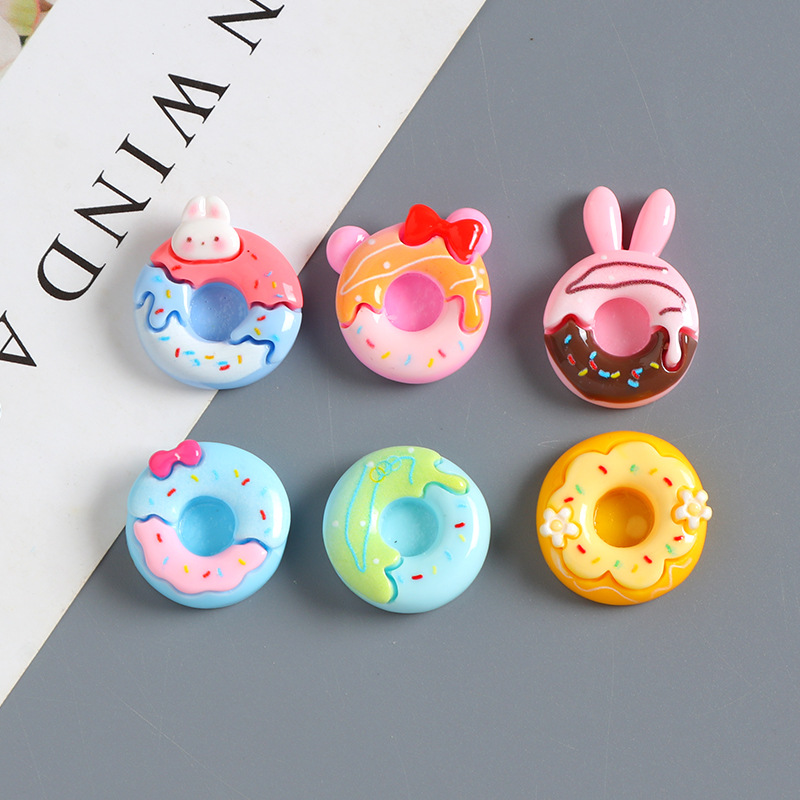 卡通食玩树脂甜甜圈小配件手工diy奶油胶发夹冰箱贴鞋扣饰品材料