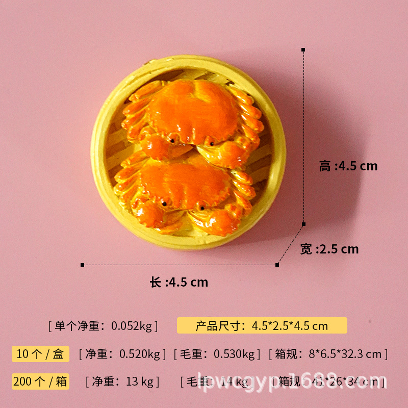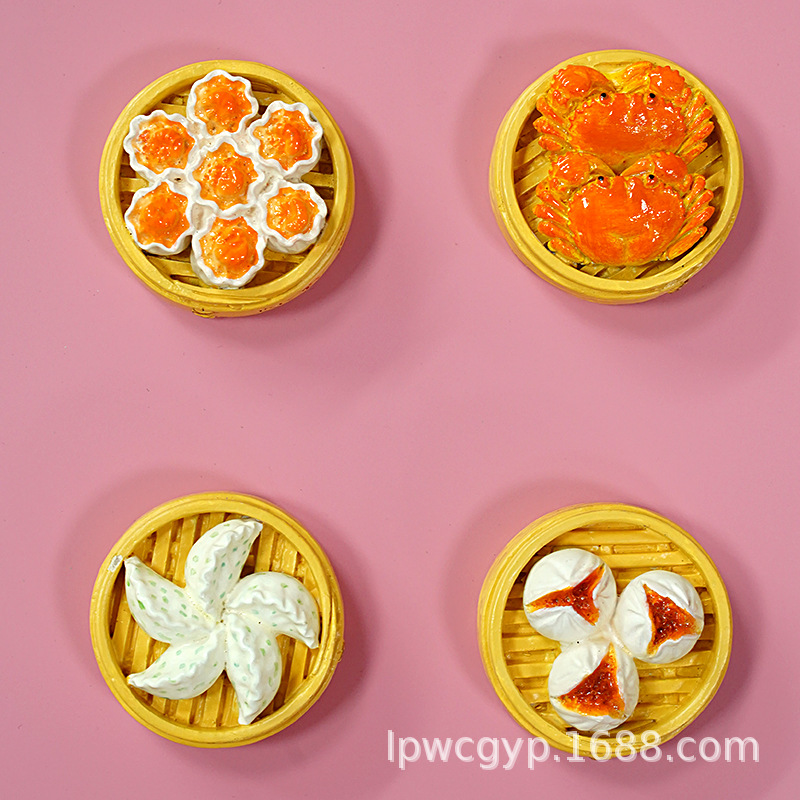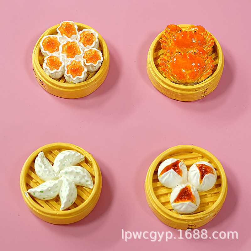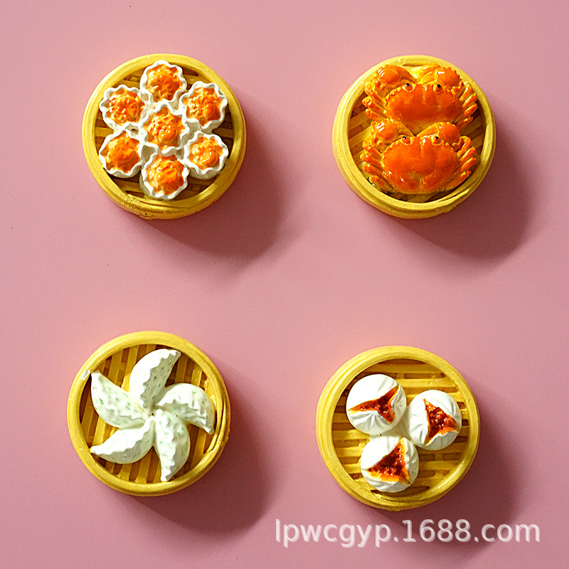 中式美食冰箱贴装饰蒸蟹蒸饺虾饺皇叉烧包豪华大卡食玩磁力贴装饰