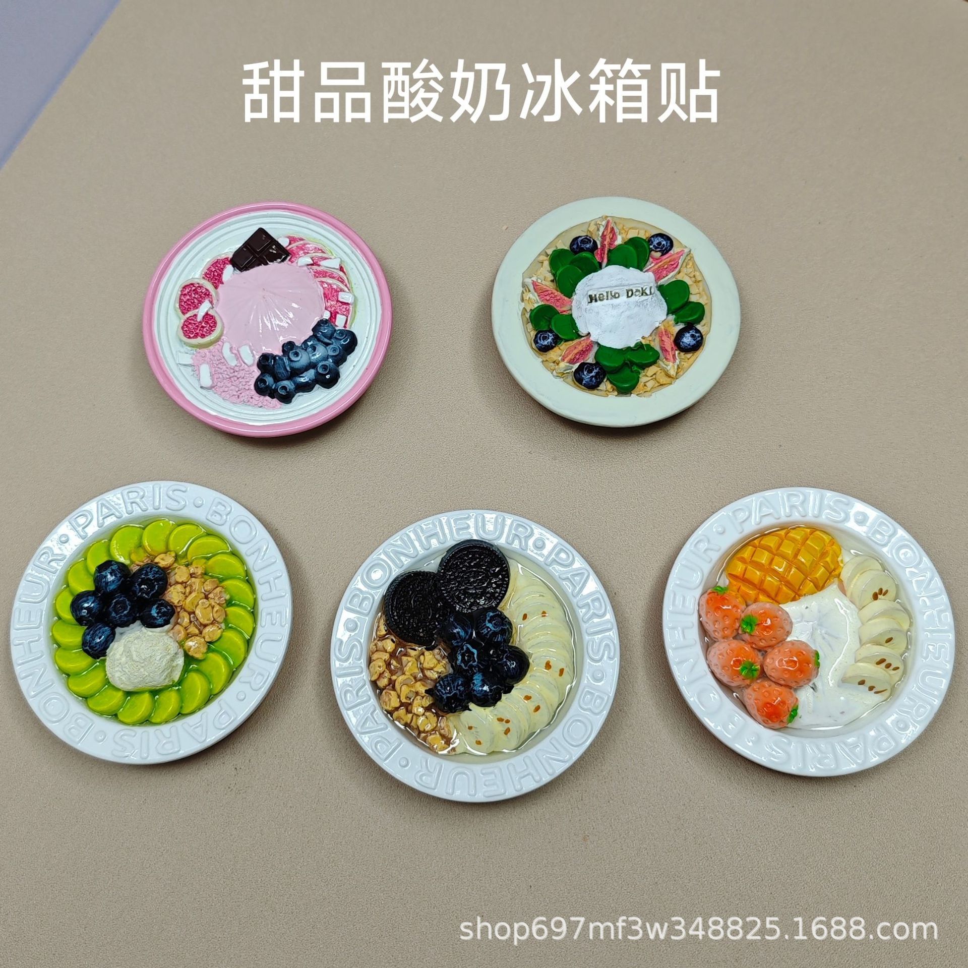 创意可爱食玩酸奶碗冰箱贴网红冰镇甜品食物树脂磁力贴仿真装饰贴