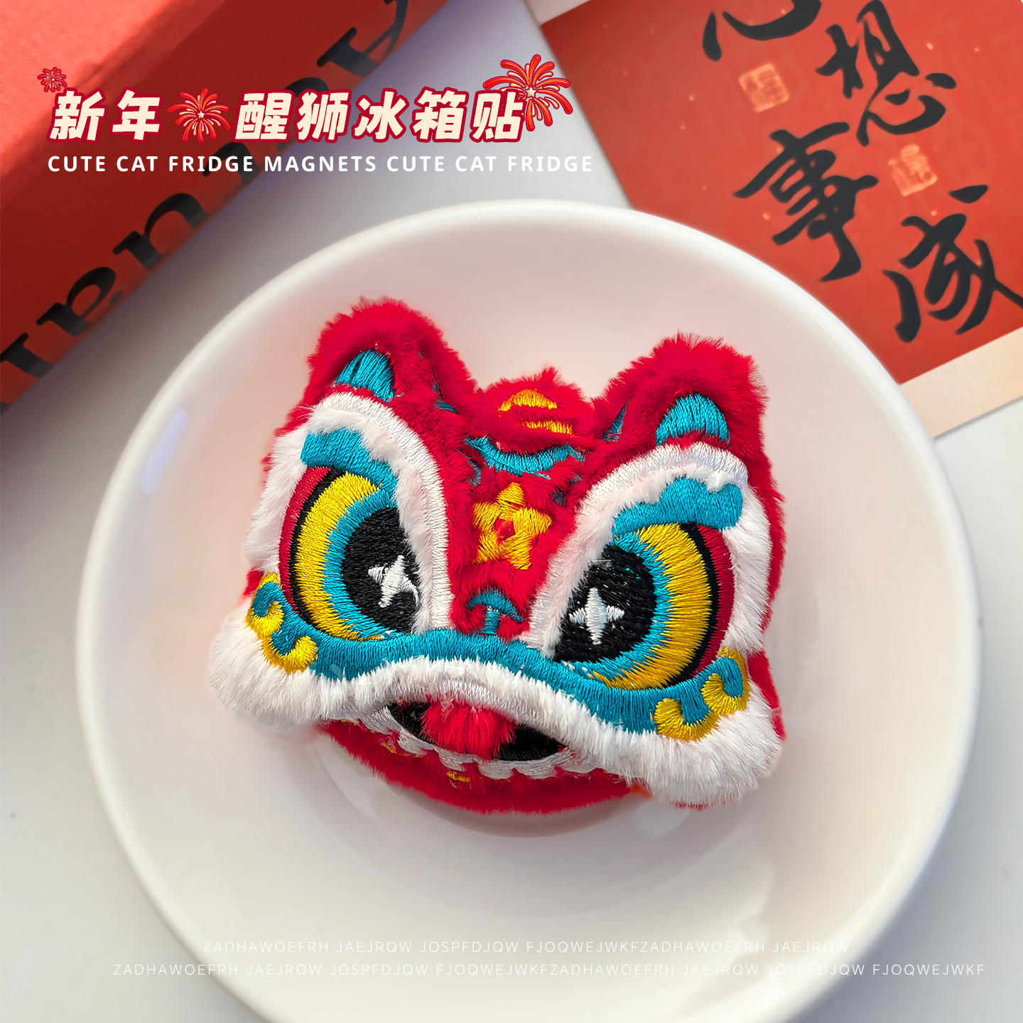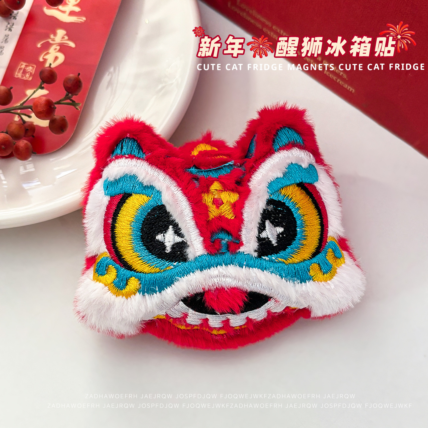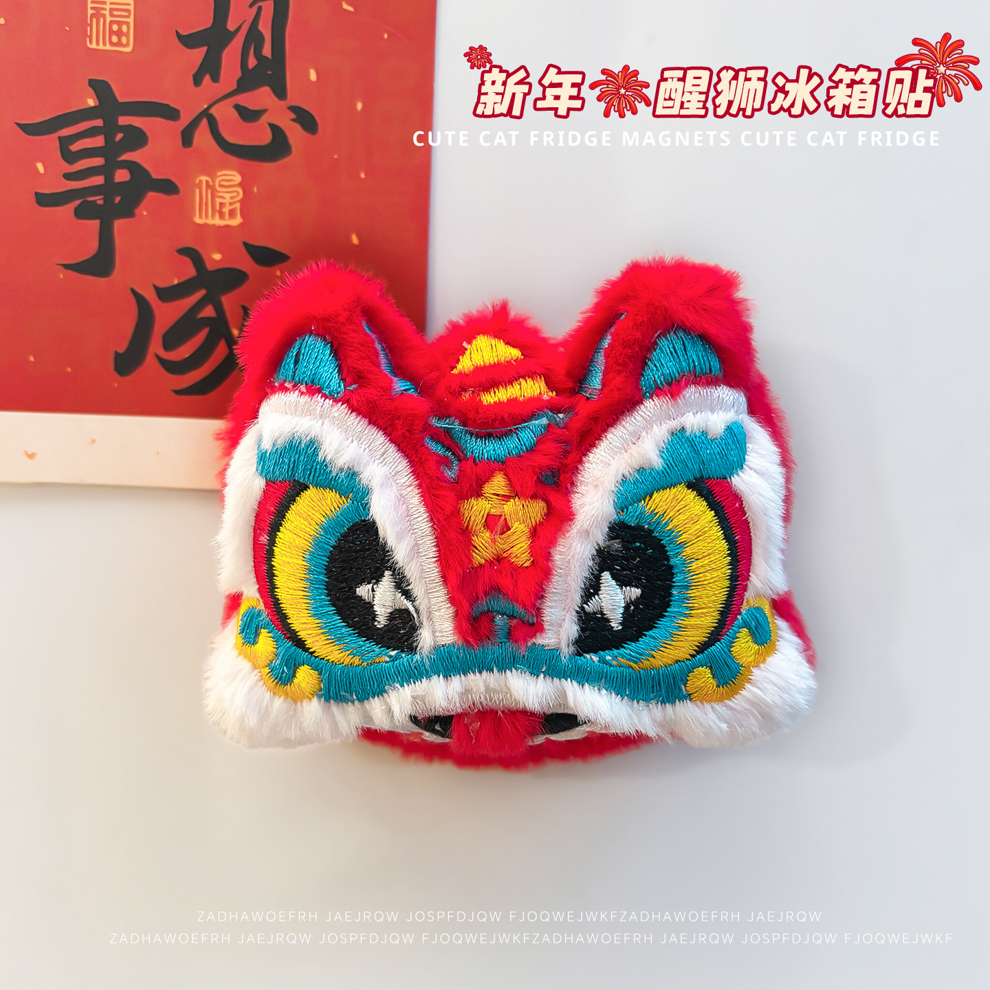 2026喜庆新年冰箱贴磁贴新款可爱卡通毛绒醒狮磁力贴居家diy装饰