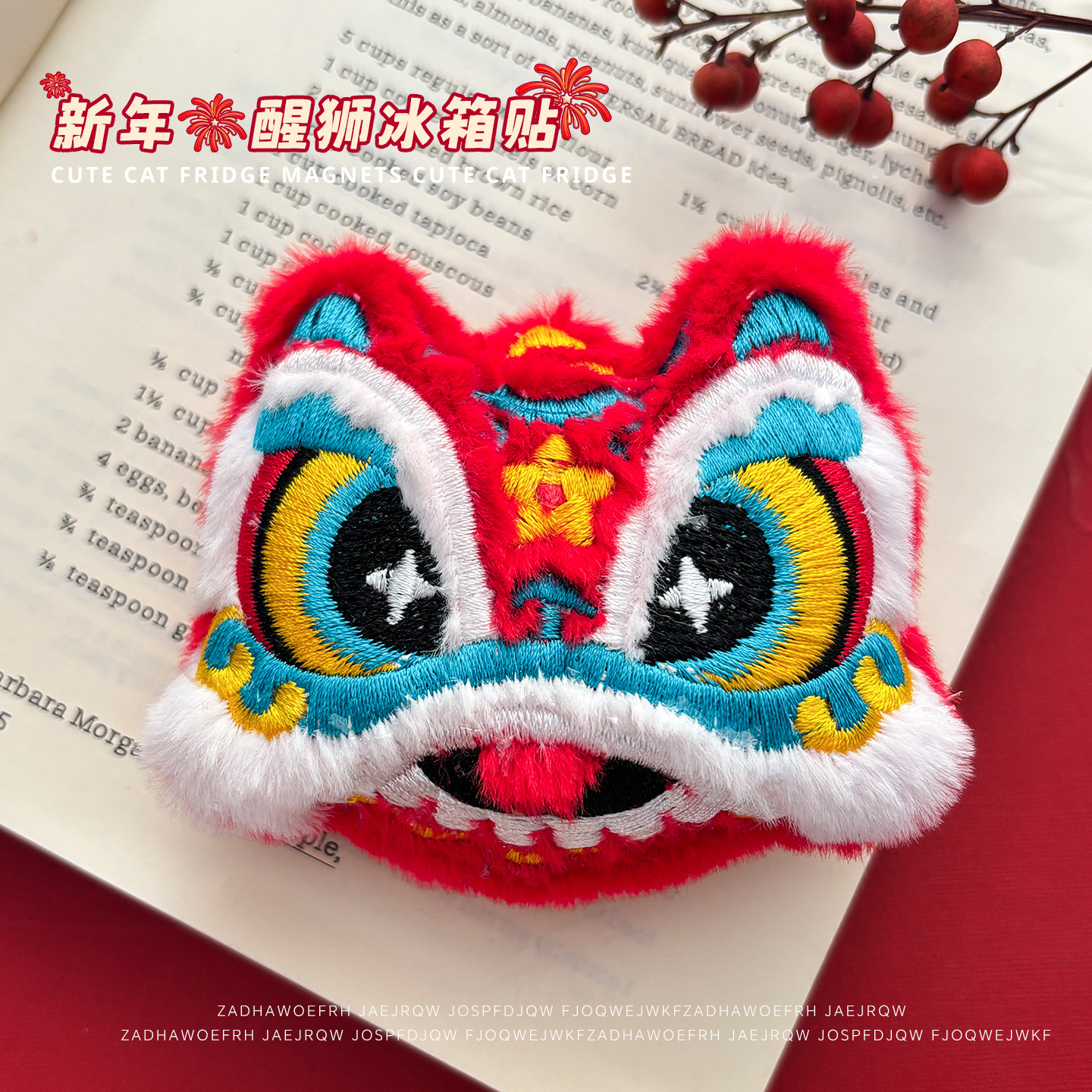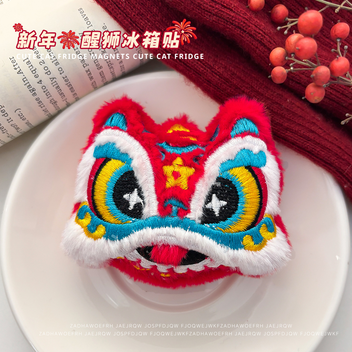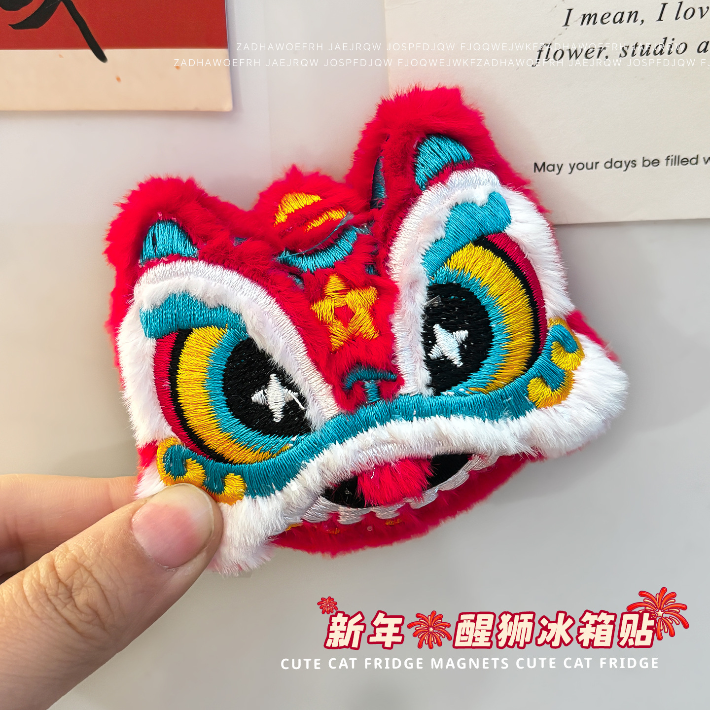2026喜庆新年冰箱贴磁贴新款可爱卡通毛绒醒狮磁力贴居家diy装饰