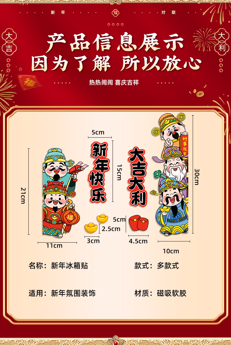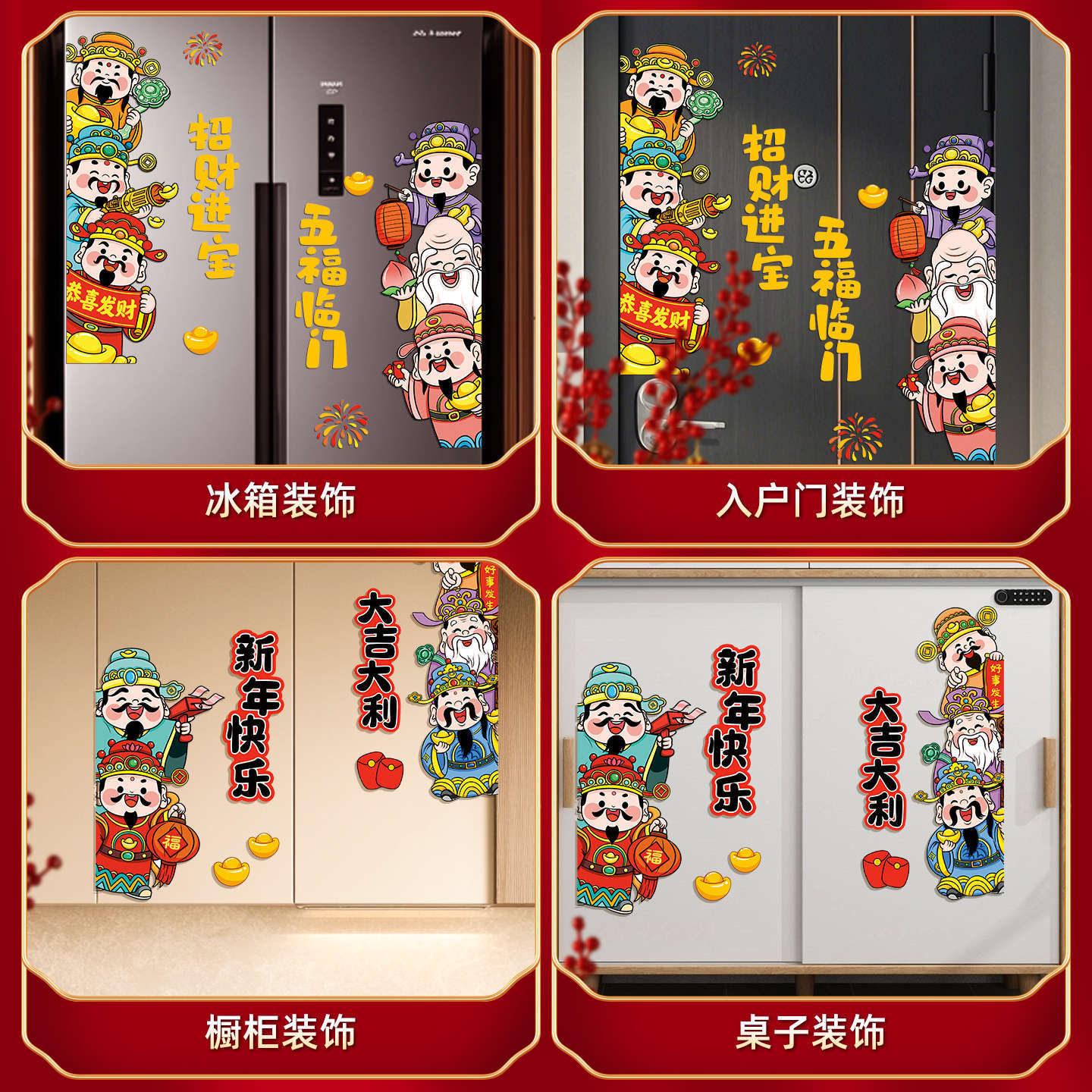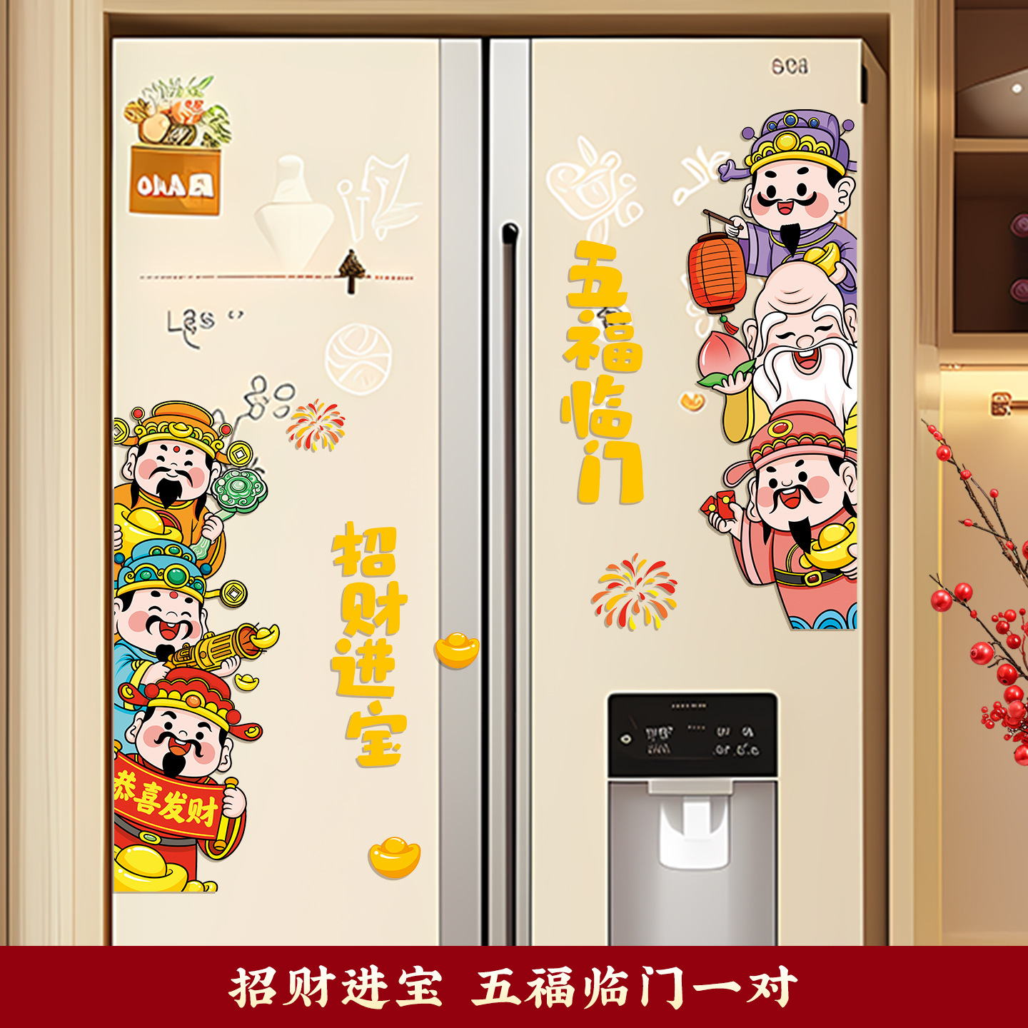 新年装饰福禄磁吸冰箱贴2026马年新款客厅春节创意布置五路财神爷