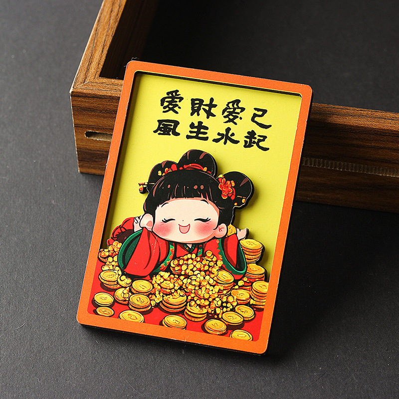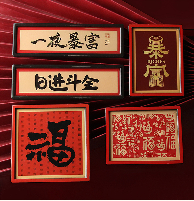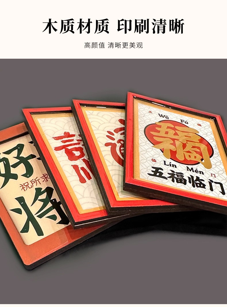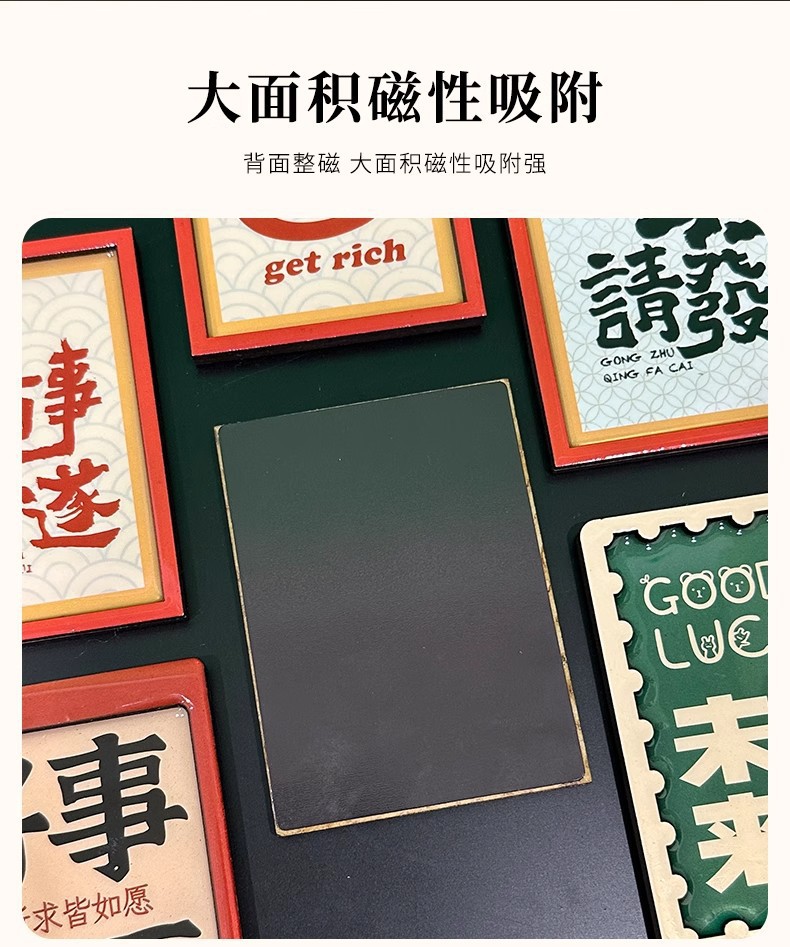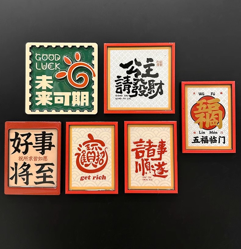 新年春节祝福字牌2026新款中国风趣味文字文创木质冰箱贴装饰磁贴