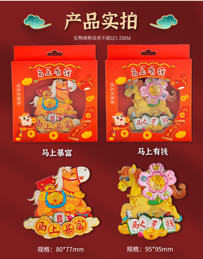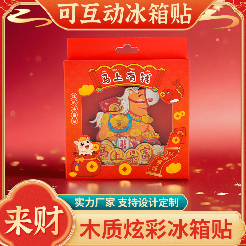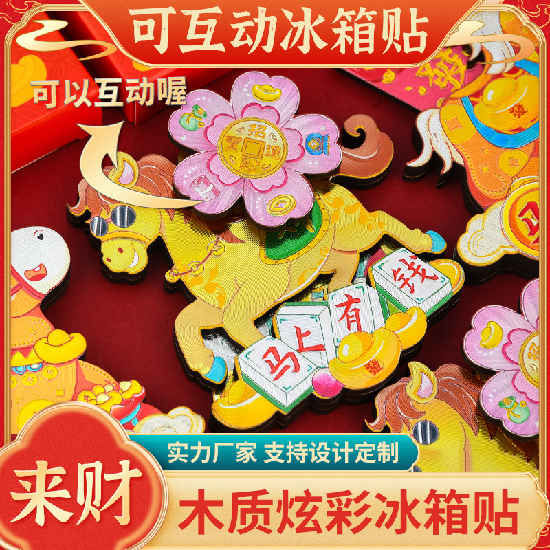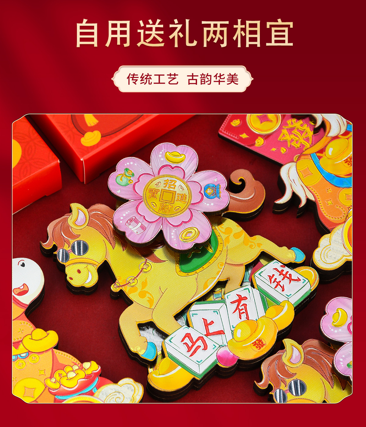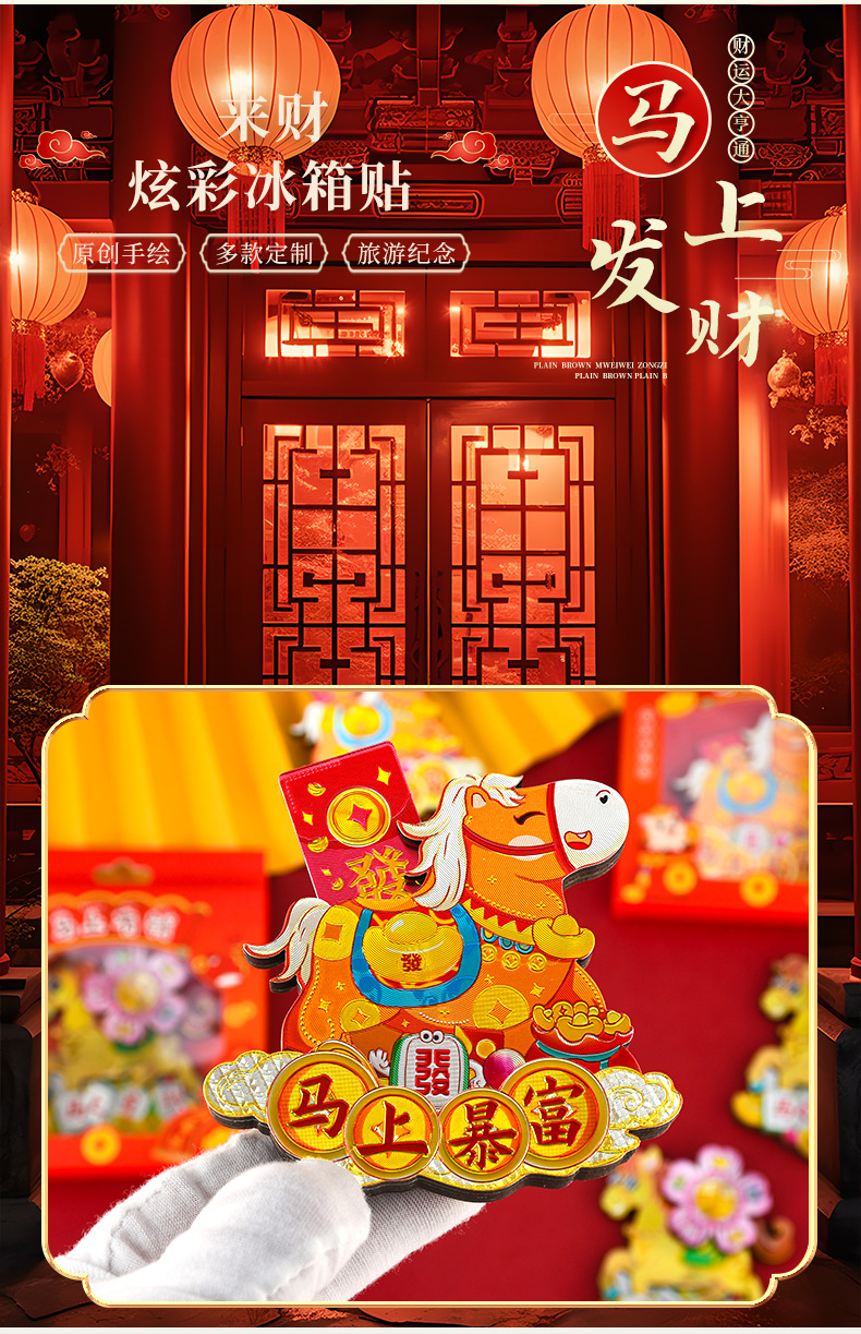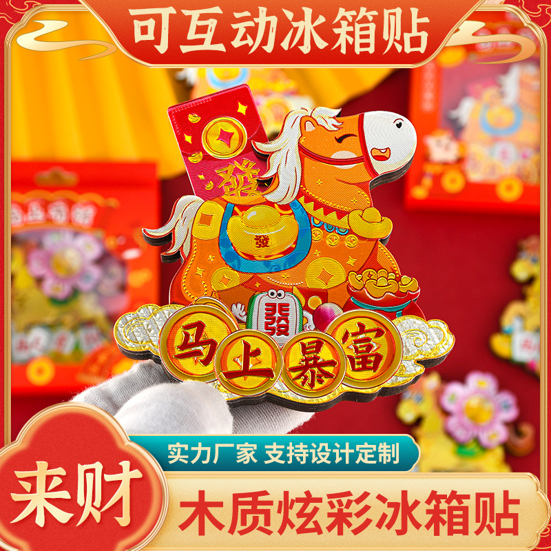 2026新年马年冰箱贴马上有钱花马上有福旋转炫彩磁性贴国潮礼品