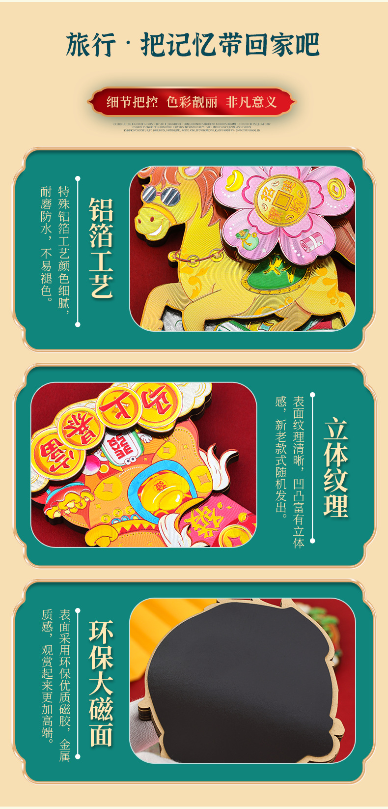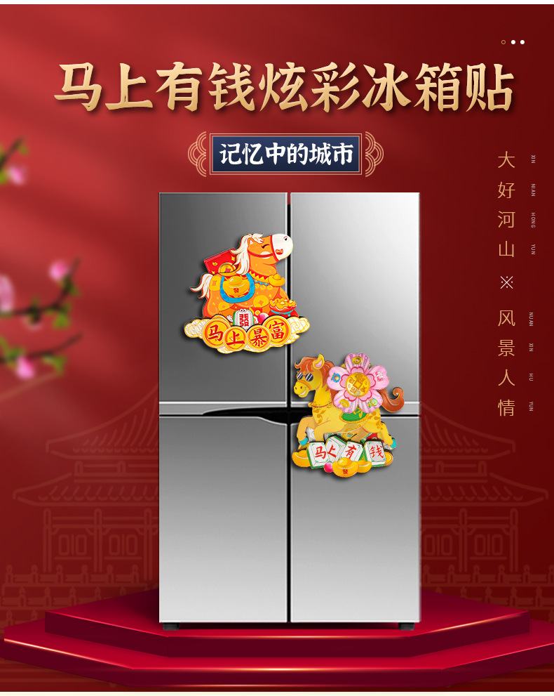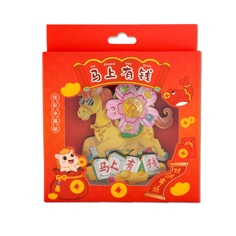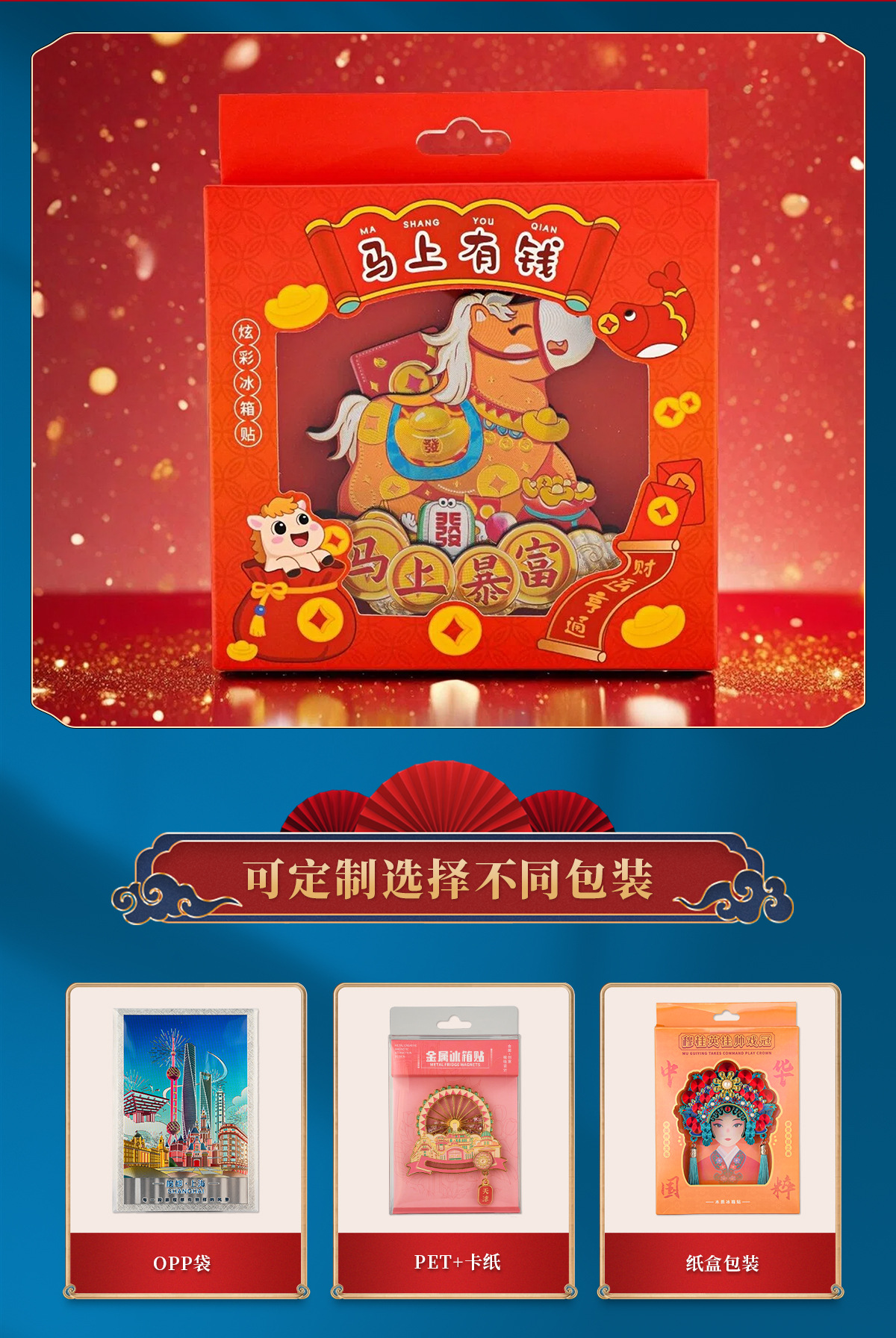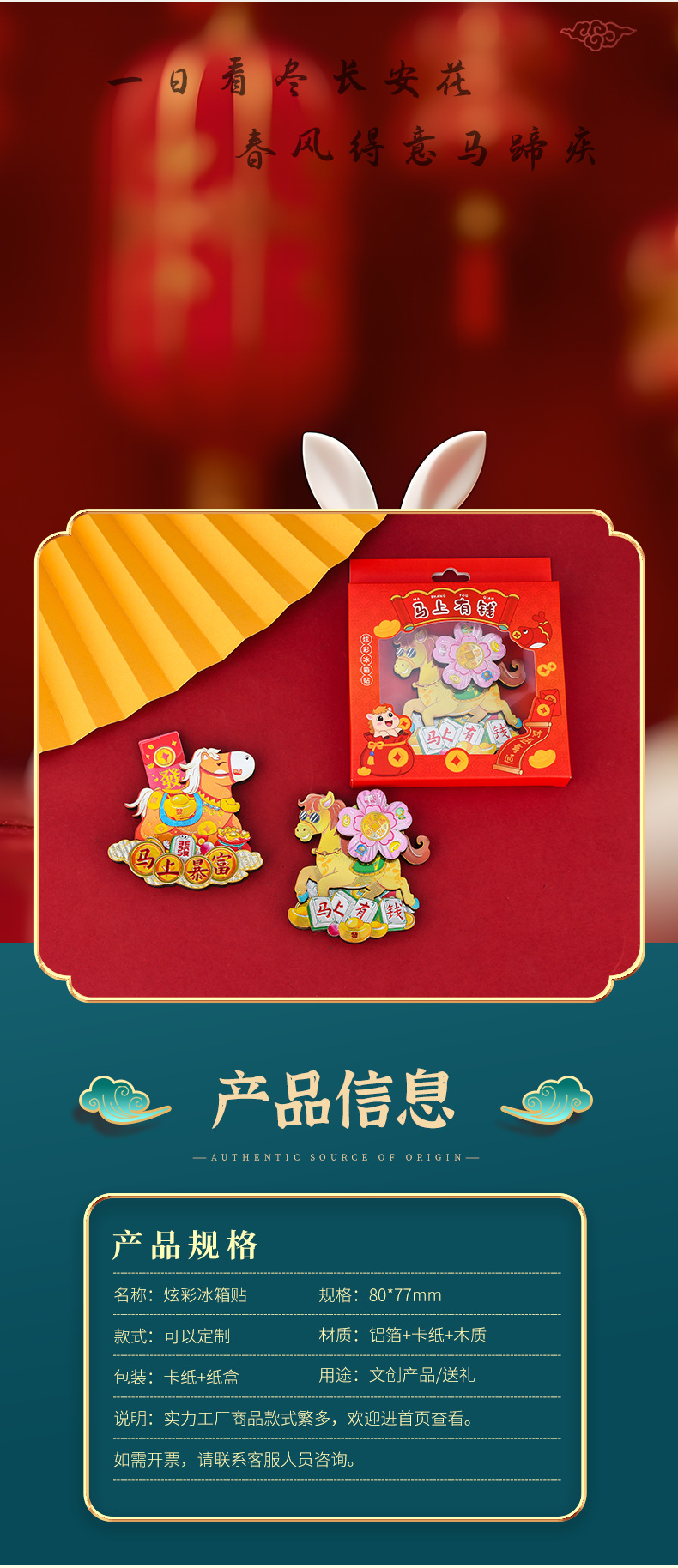 2026新年马年冰箱贴马上有钱花马上有福旋转炫彩磁性贴国潮礼品