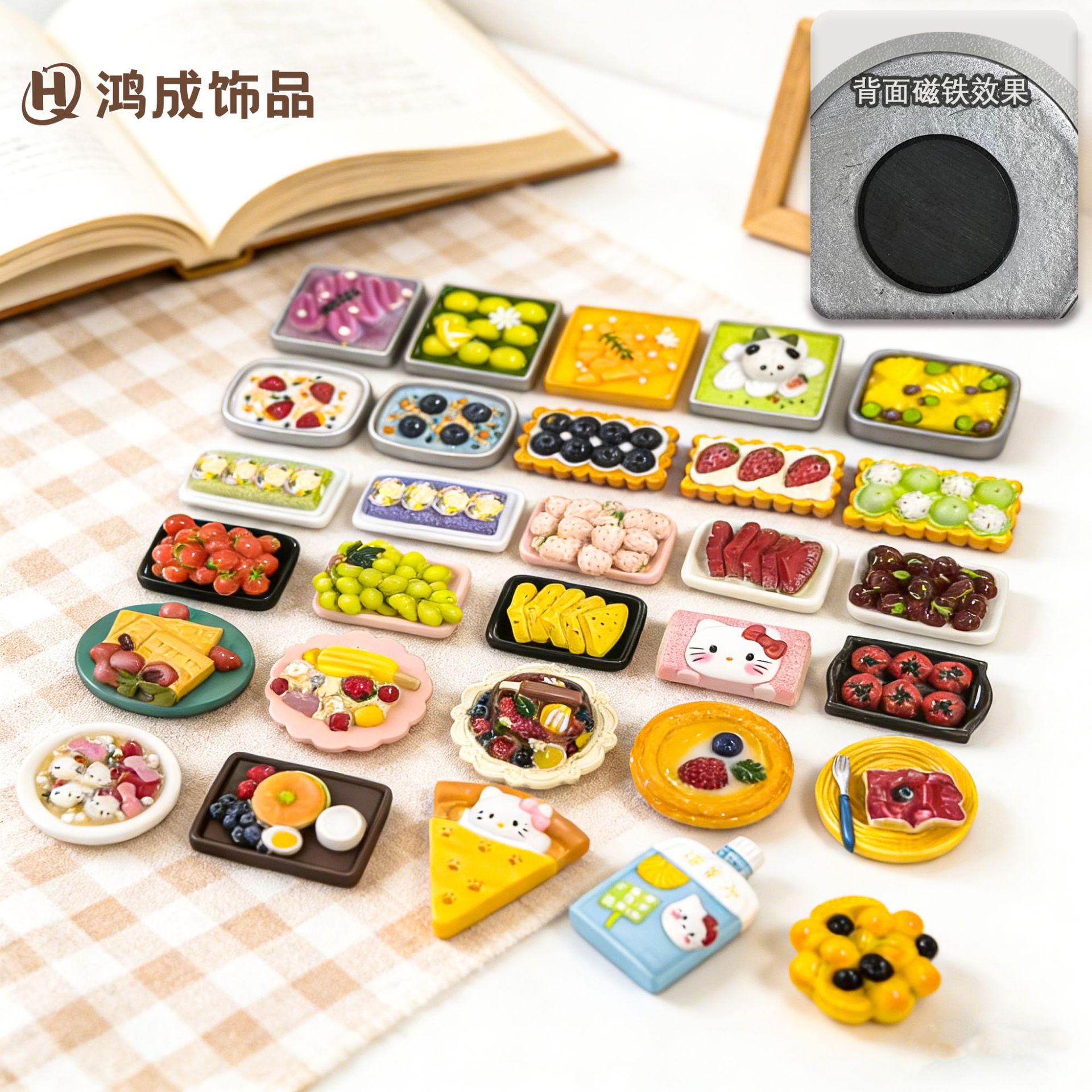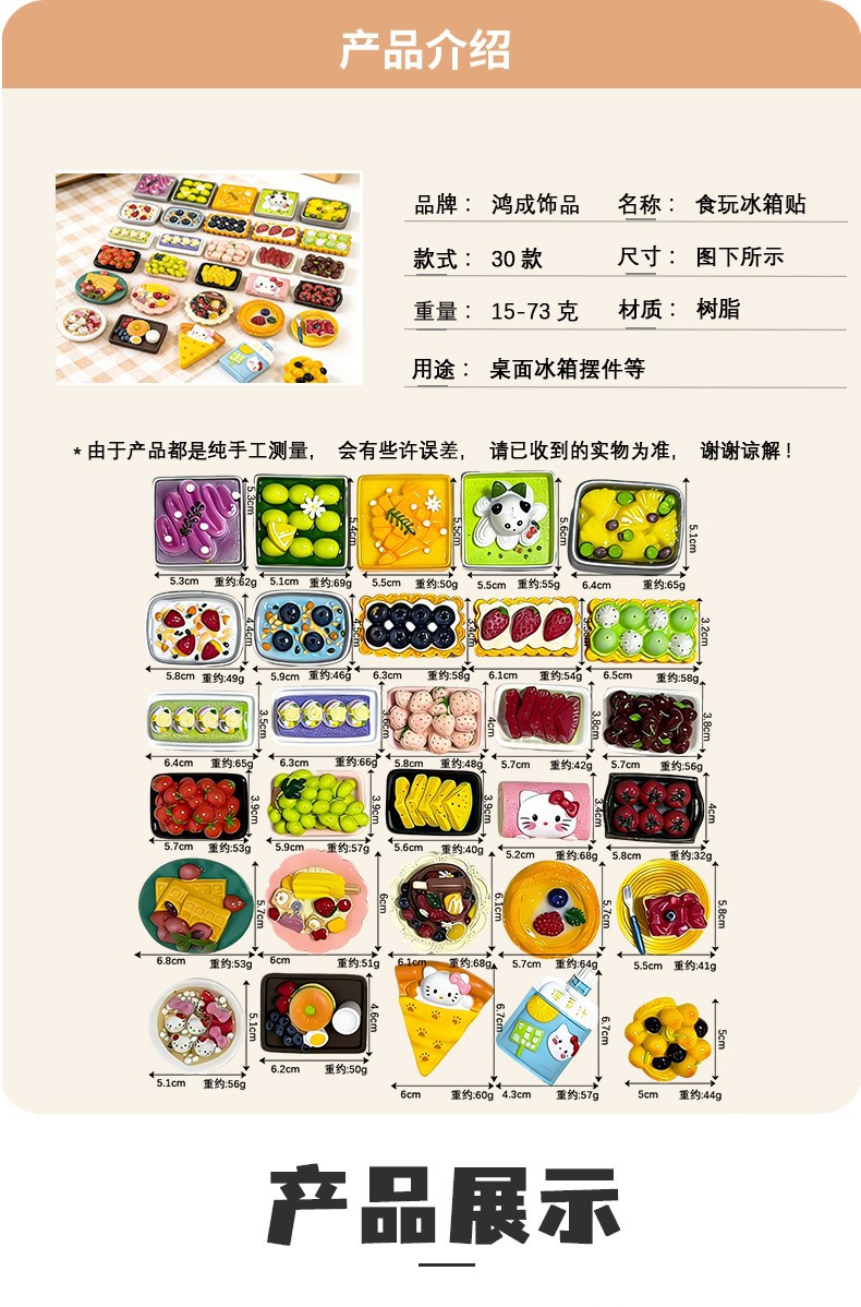 新款仿真水果沙拉甜品树脂大食玩DIY冰箱贴3D立体磁吸贴源头厂家