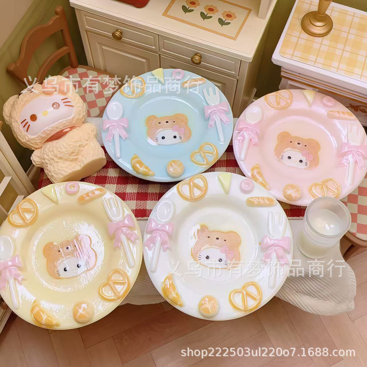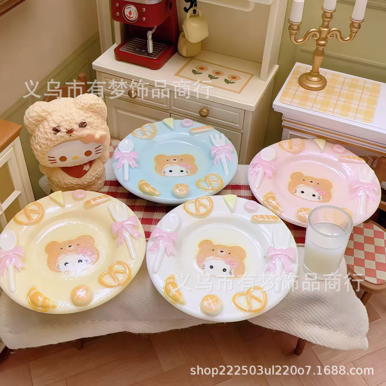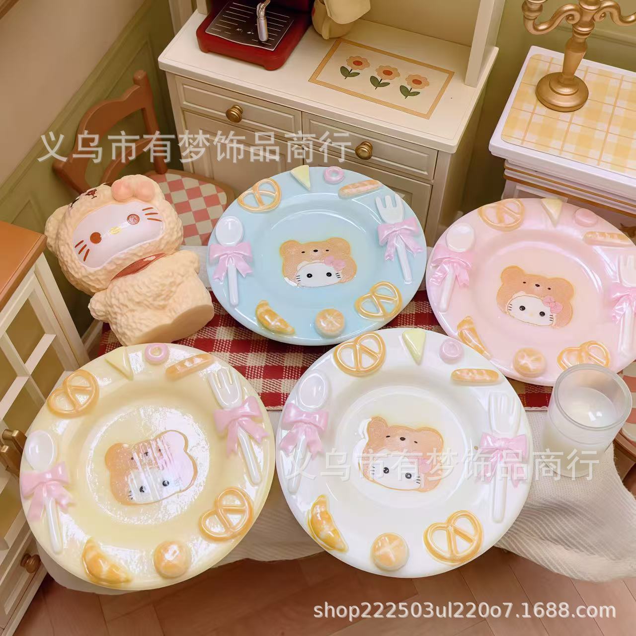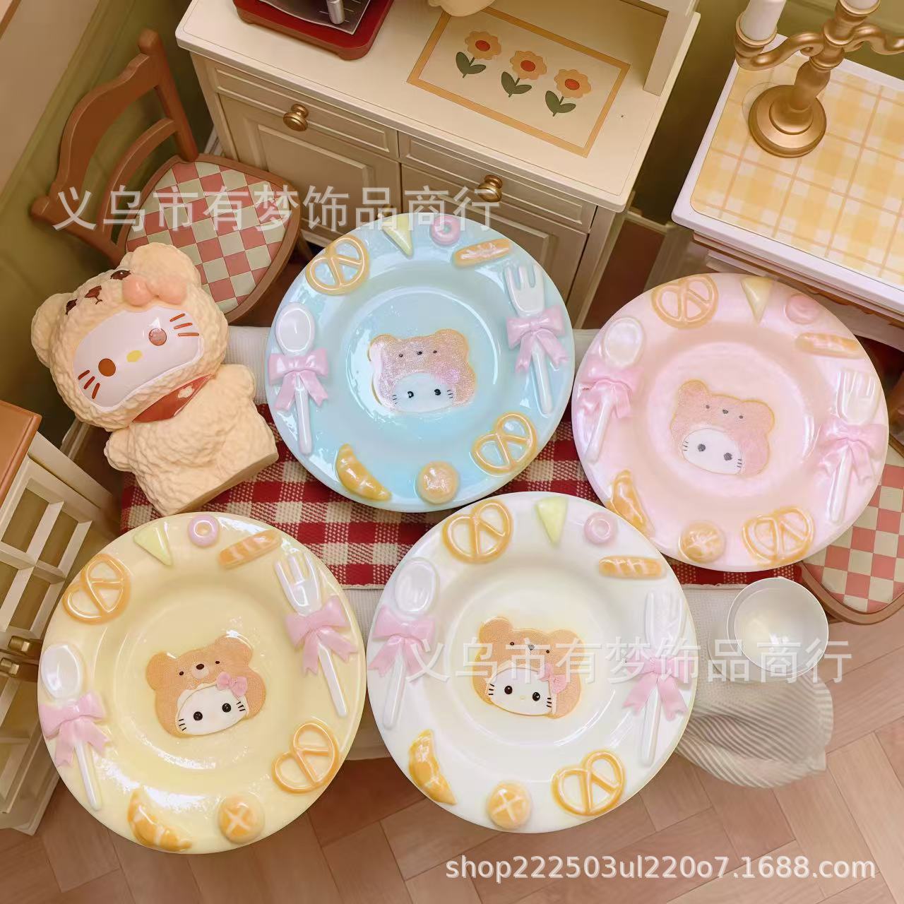仿真微缩食玩小熊盘子diy奶油饰品配件手工摆件捏捏装饰盘冰箱贴