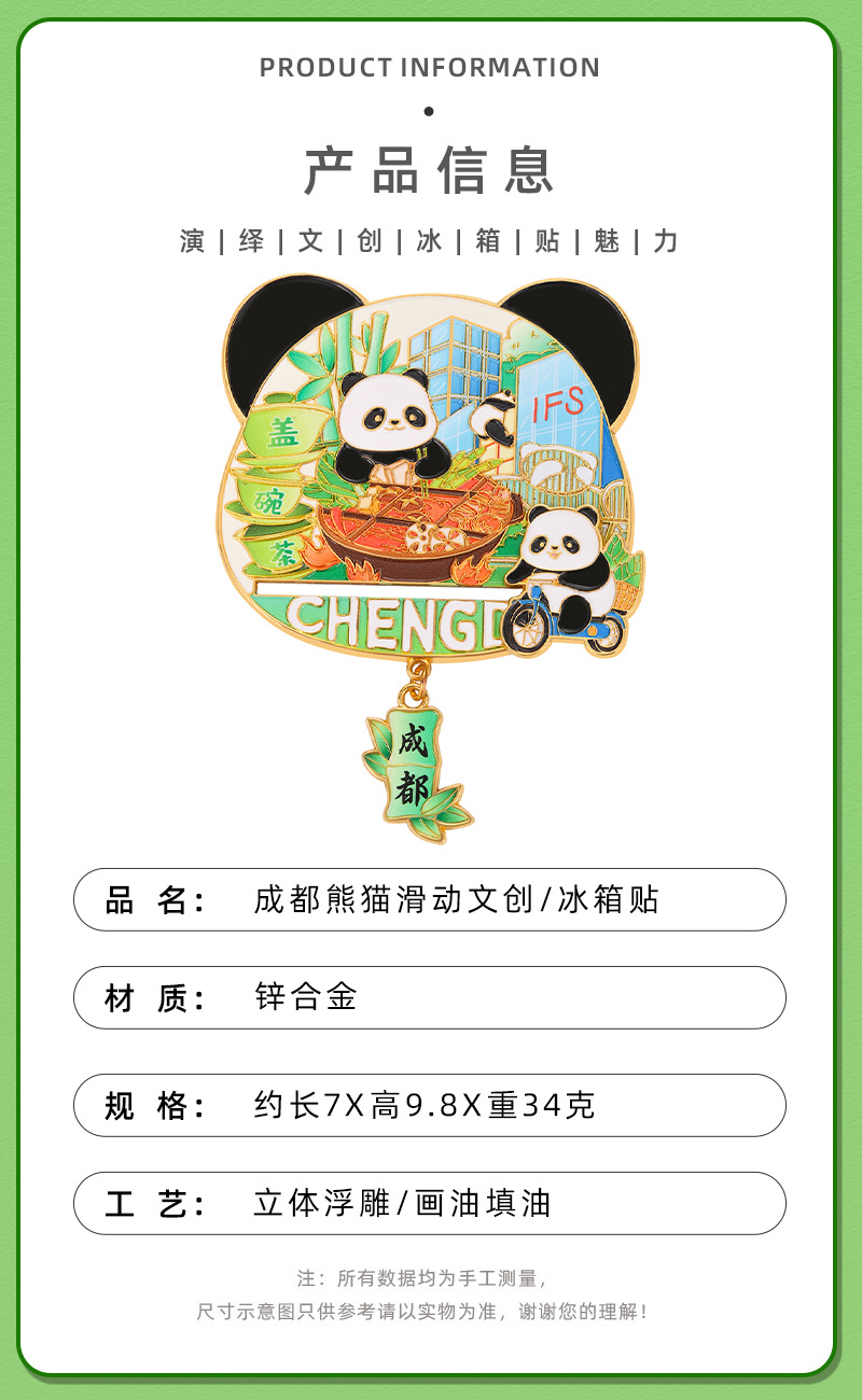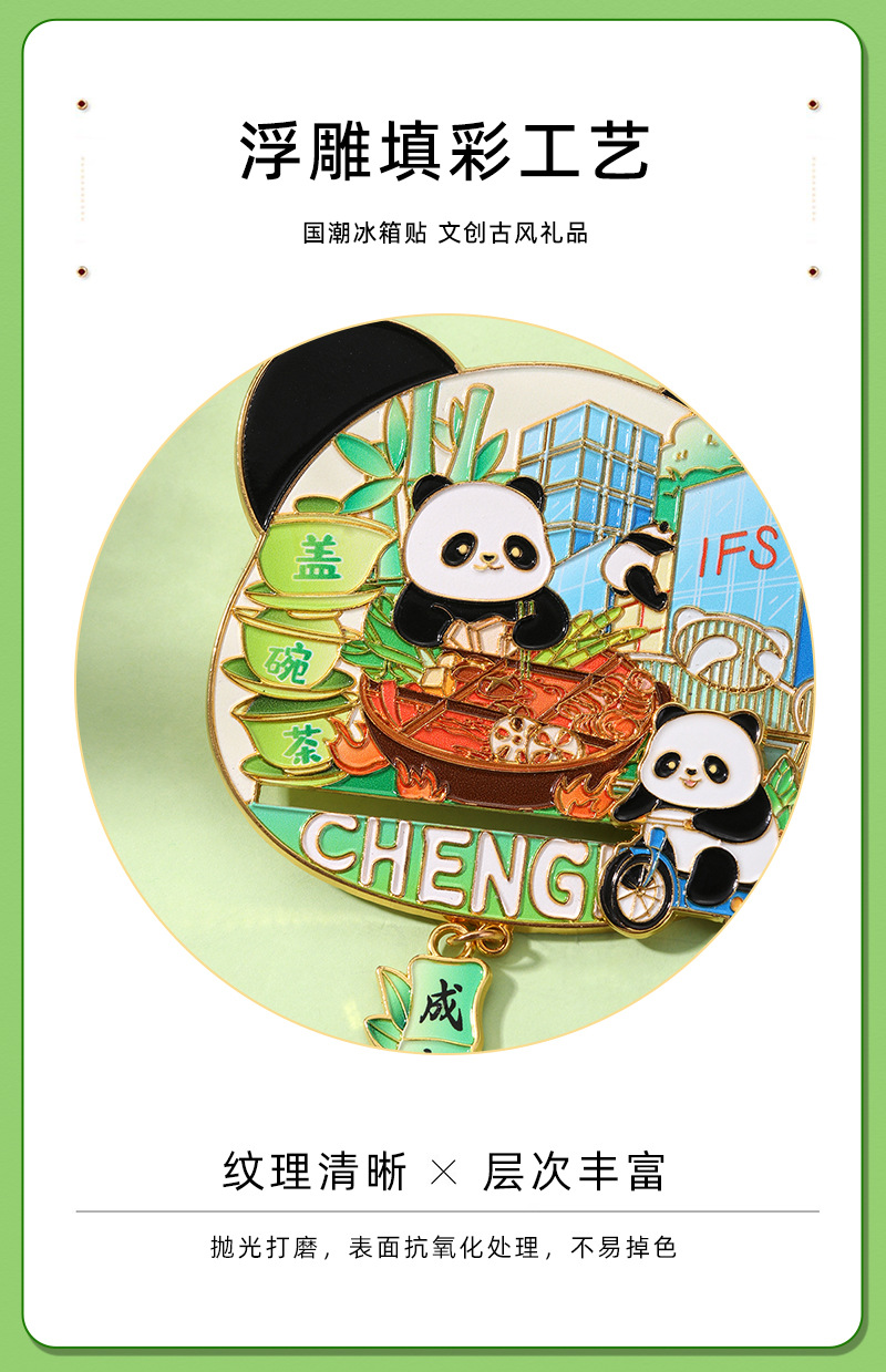 成都文创可爱熊猫冰箱贴国潮家居装饰可滑动食玩冰箱贴旅游纪念品