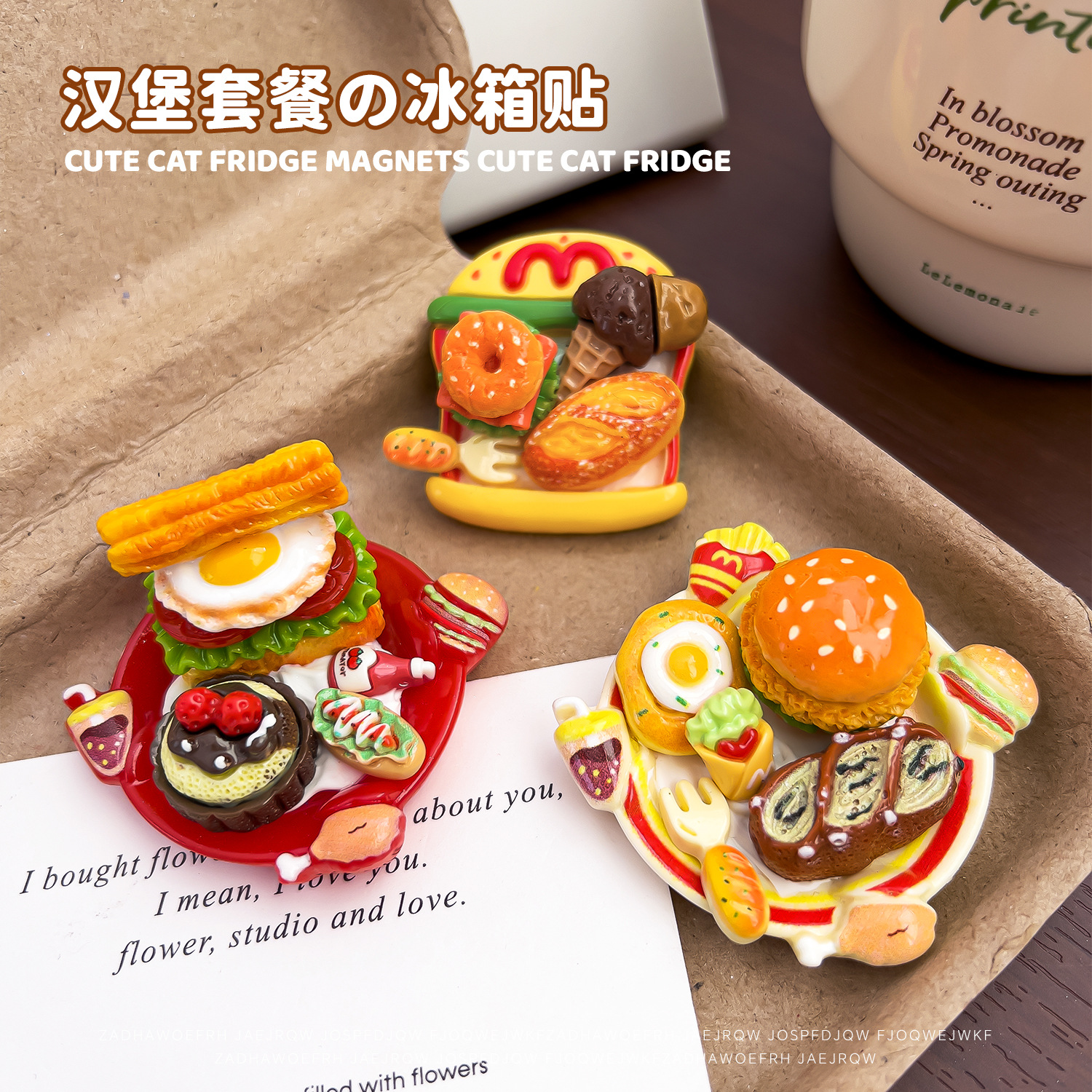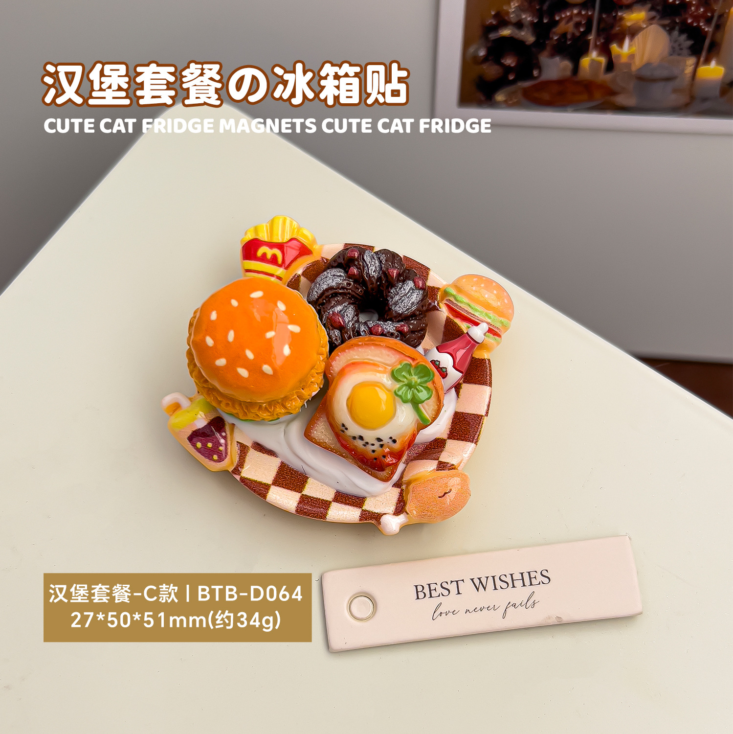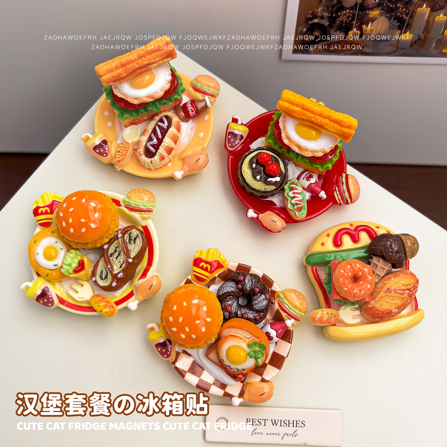 仿真食玩磁吸冰箱贴创意汉堡面包餐盘居家摆件diy冰箱门装饰磁贴