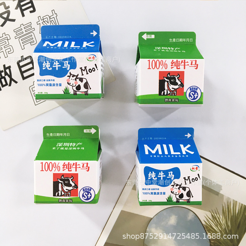 搞怪牛奶盒冰箱贴 搞笑纯牛马 仿真牛奶盒磁铁食玩 超市磁吸饰品