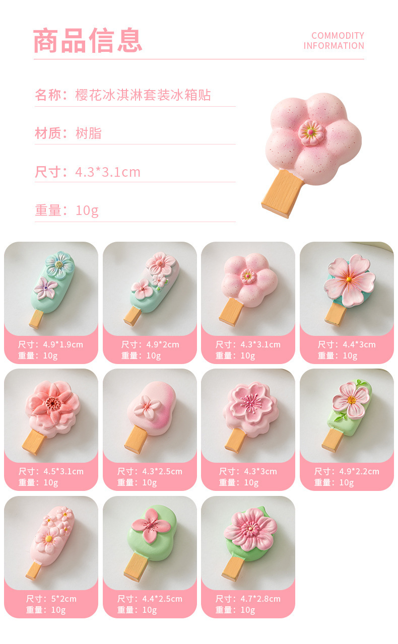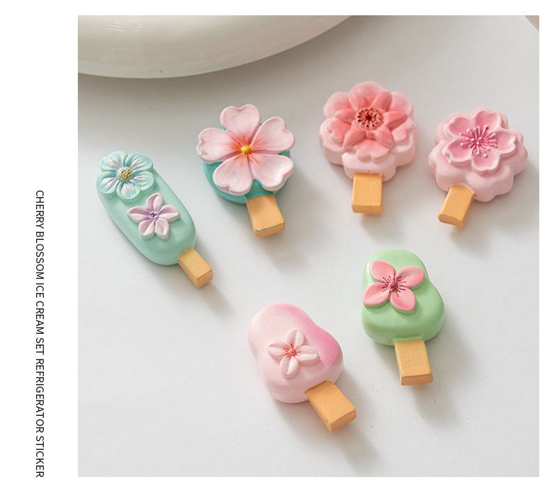 浪漫樱花雪糕冰箱贴创意立体卡通磁吸贴家居厨房食玩装饰diy配件