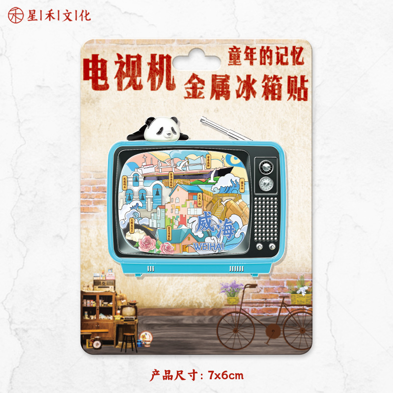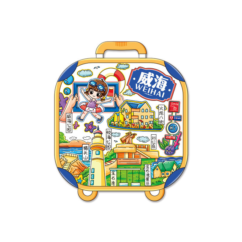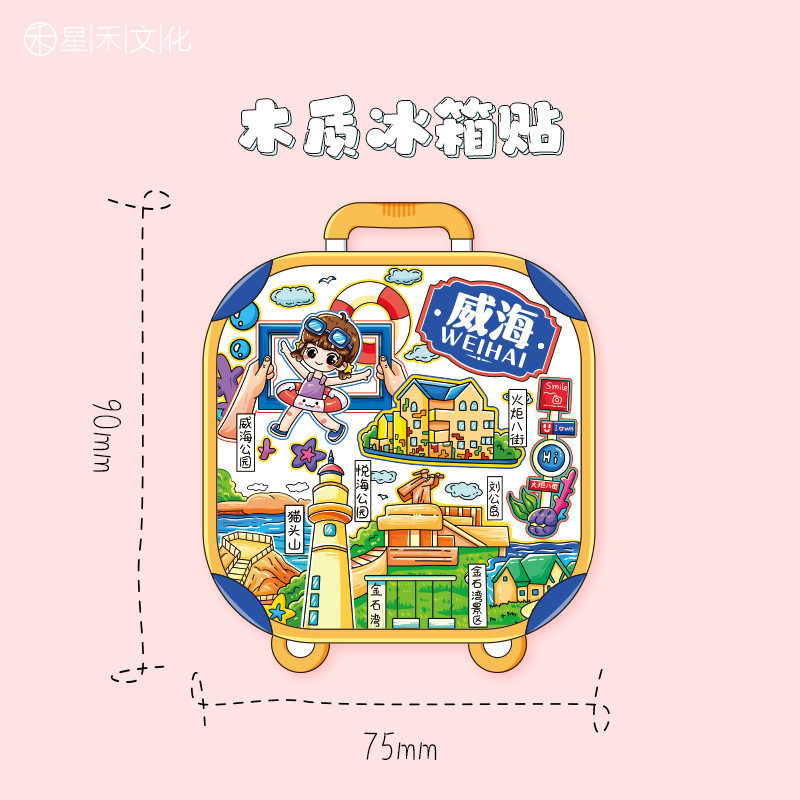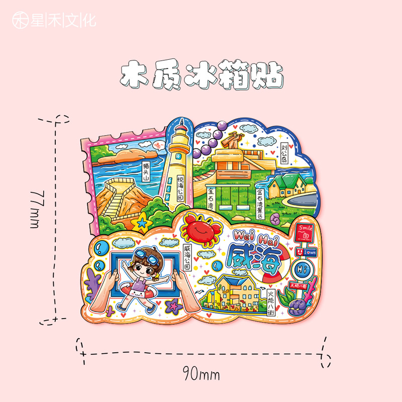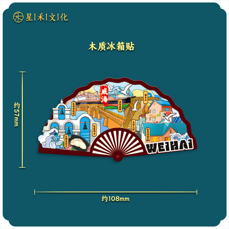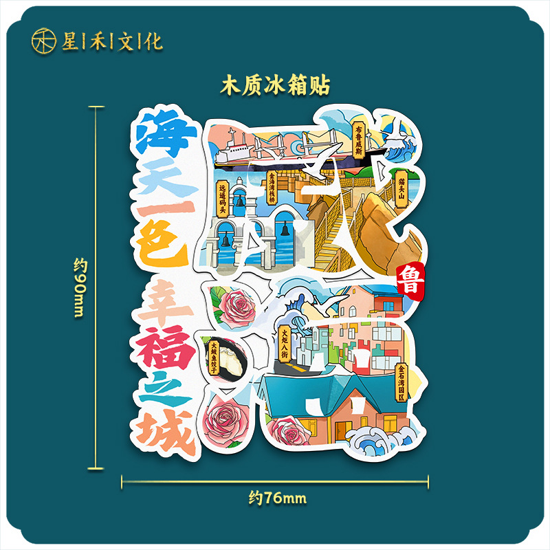 厂家现货小批量批发城市文创国潮木制金属威海冰箱贴创意促销礼品
