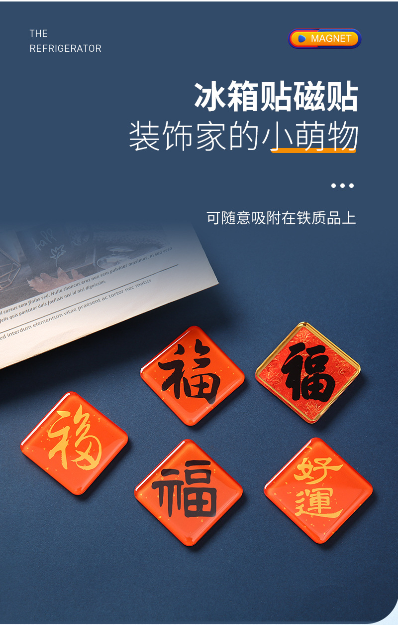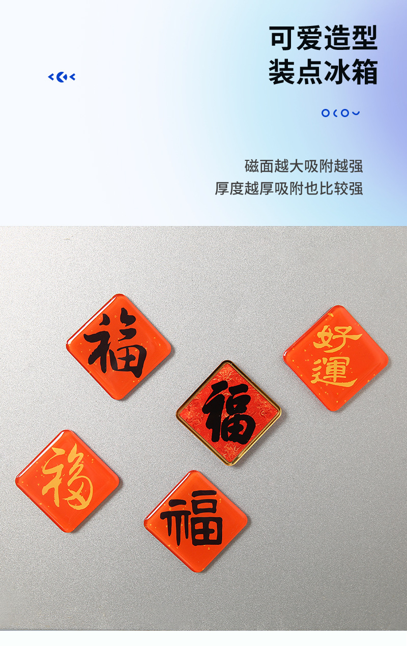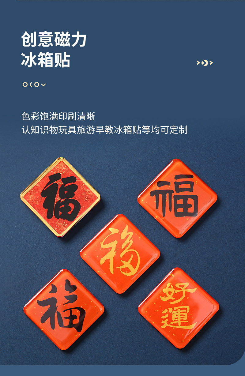 创意福字冰箱贴定制新年氛围磁性贴卡通家居装饰国潮磁力贴批发