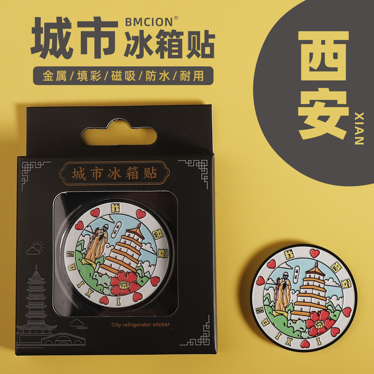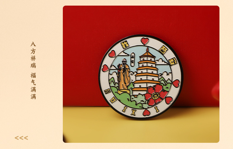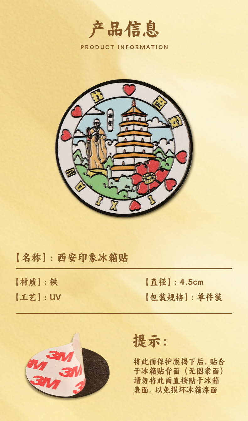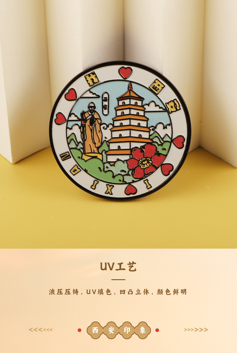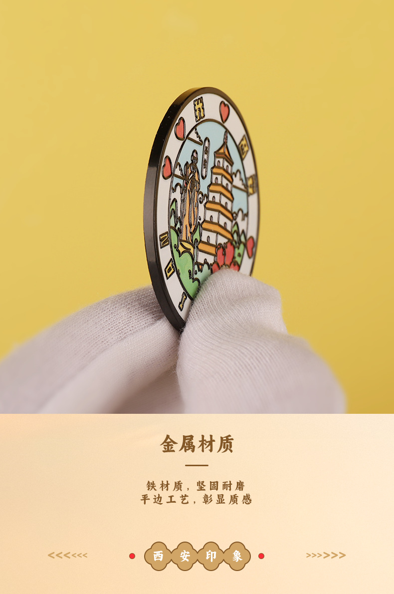 西安城市旅游文创圆形金属冰箱贴 旅游纪念品 磁吸冰箱贴