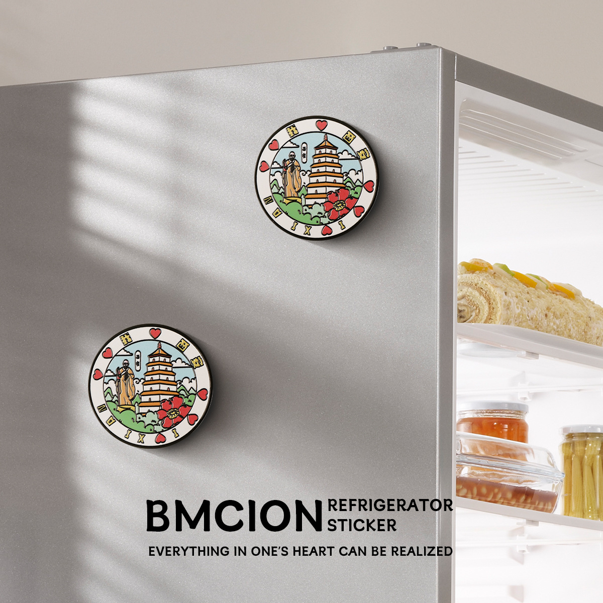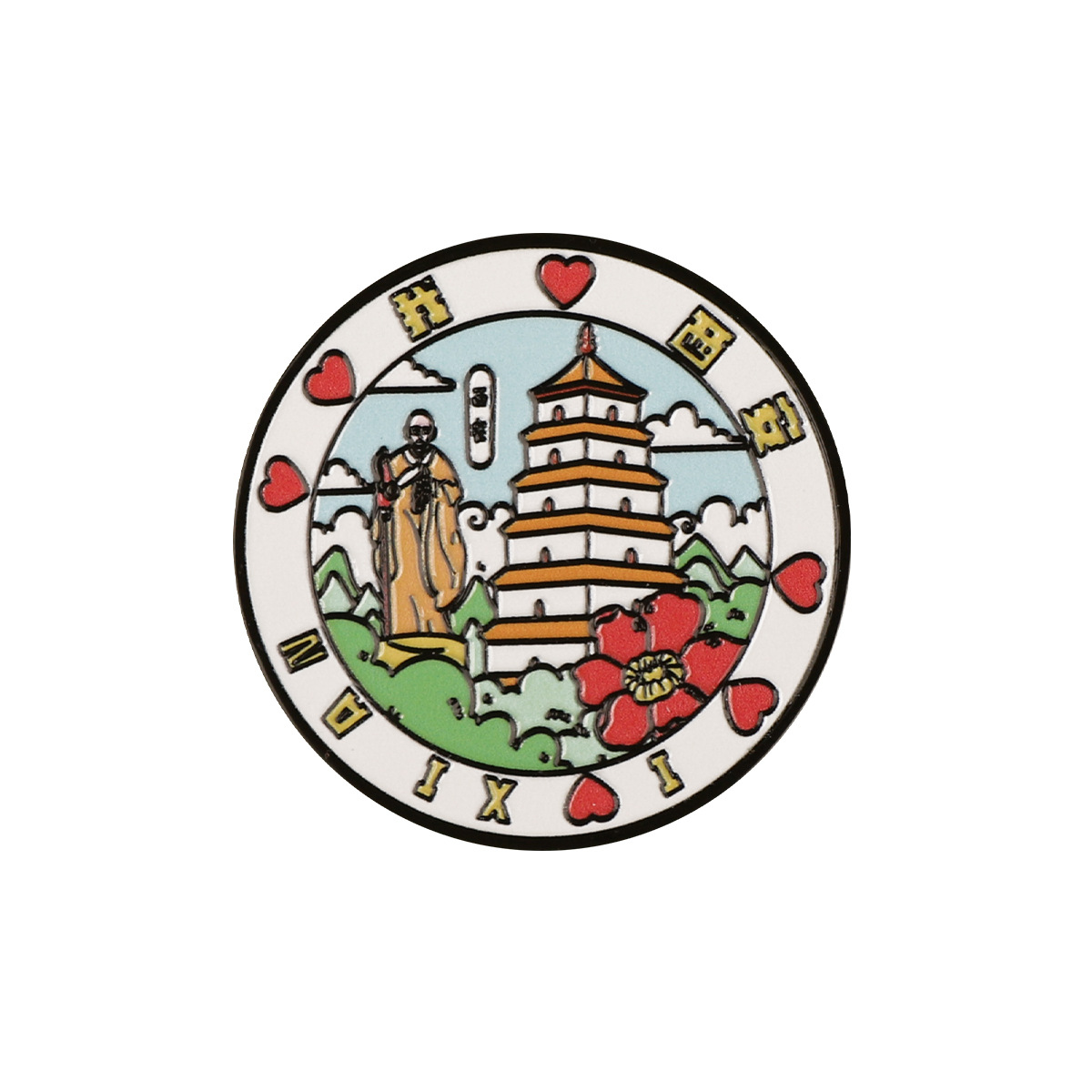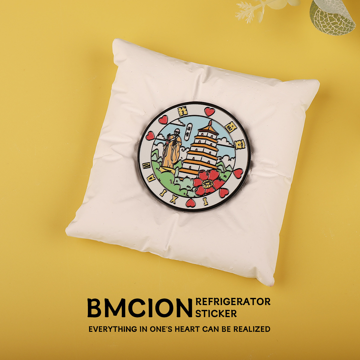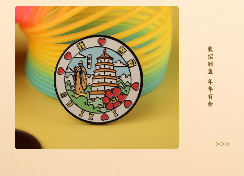 西安城市旅游文创圆形金属冰箱贴 旅游纪念品 磁吸冰箱贴