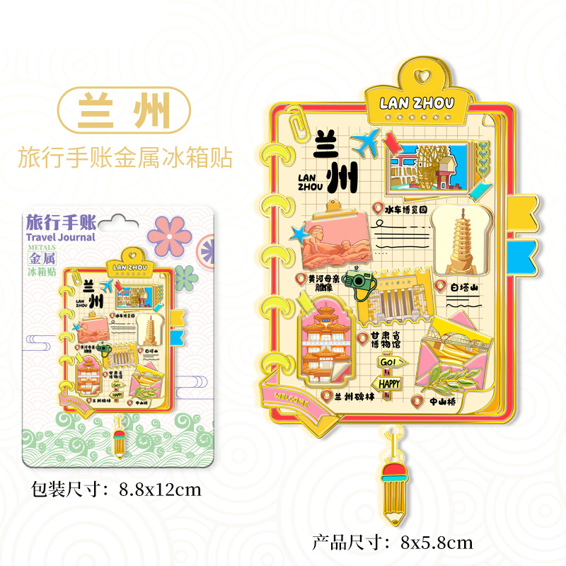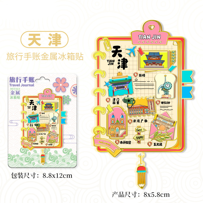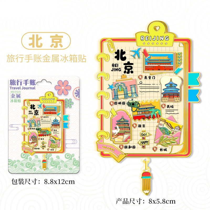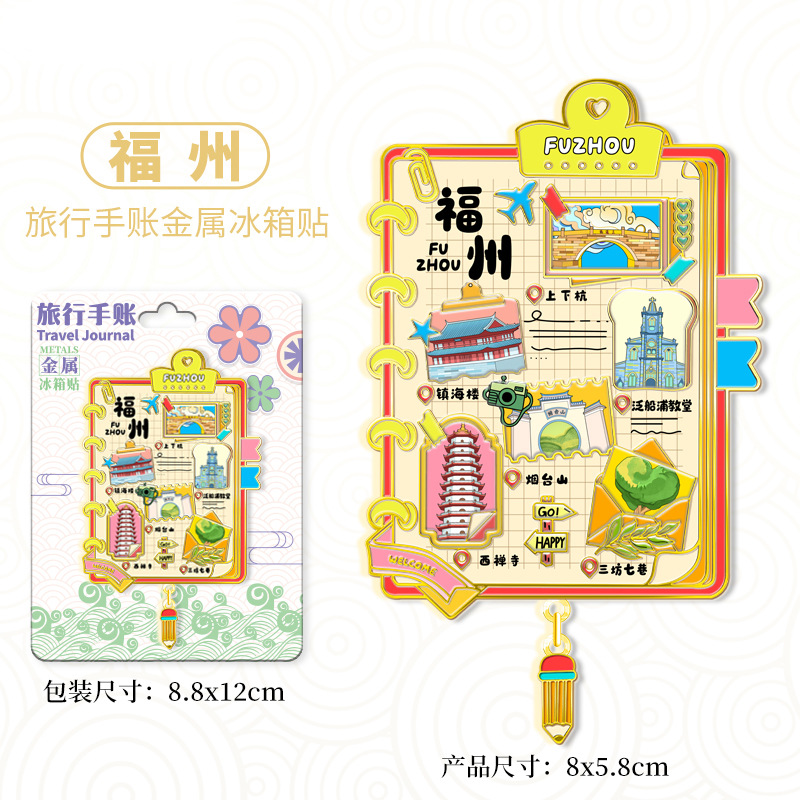 金属手账本趣味景点冰箱贴国潮文创磁吸立体创意城市旅游纪念礼品