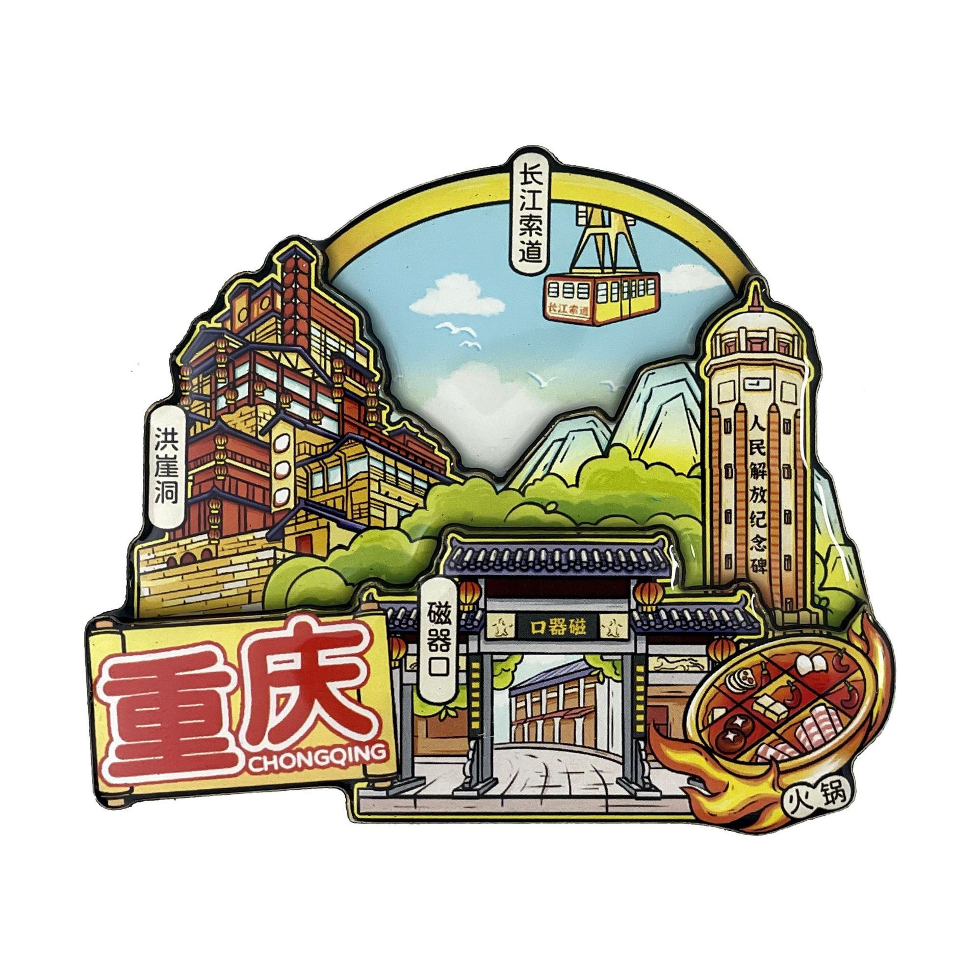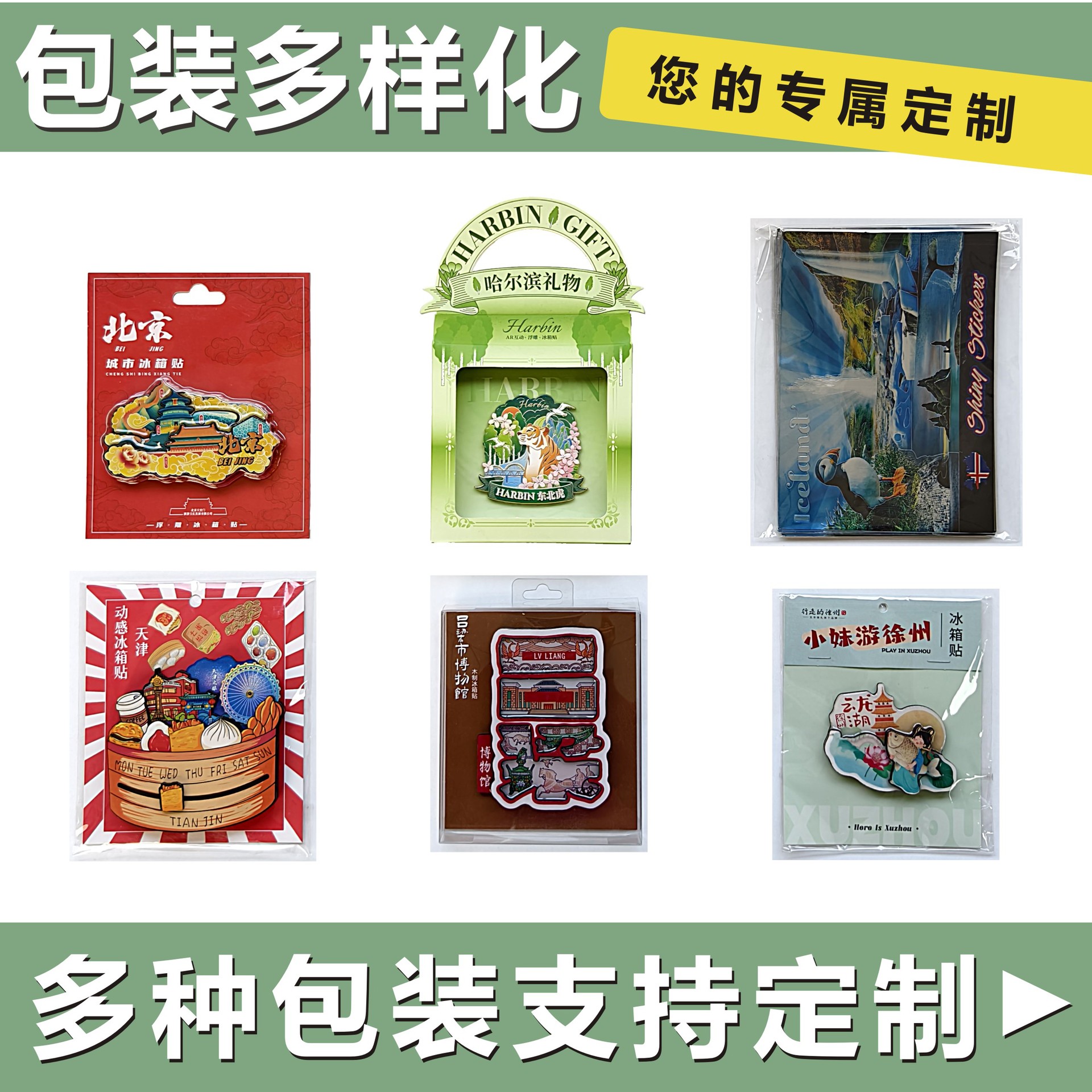 三层木质滴胶文创城市冰箱贴磁铁强吸diy文化创意冰箱贴定制定做