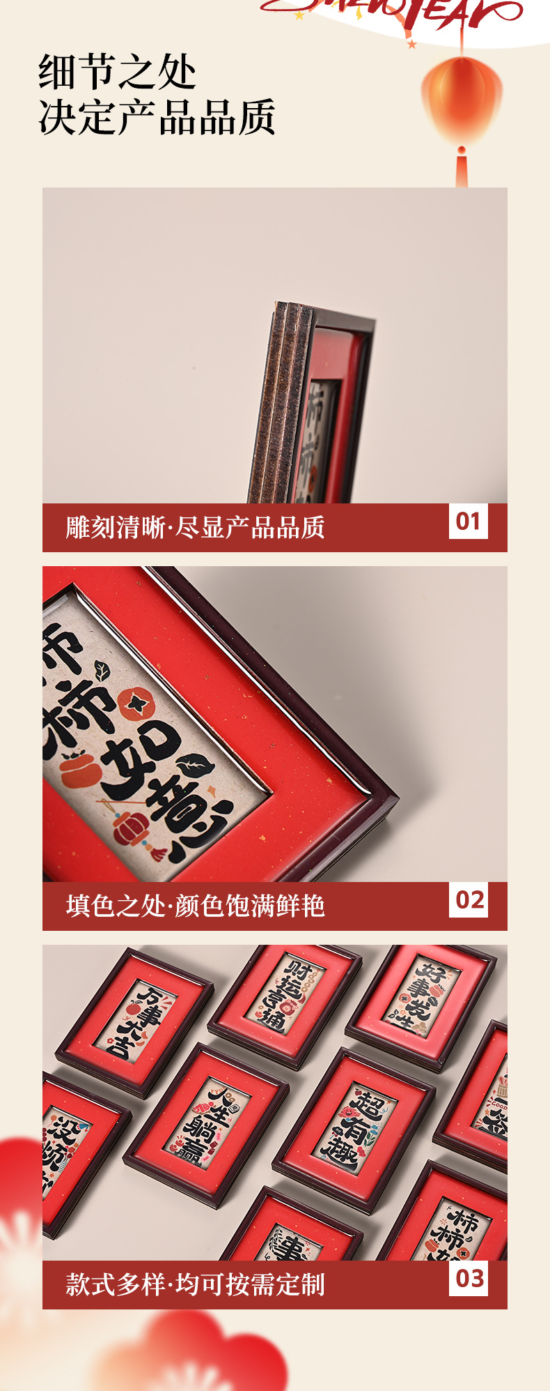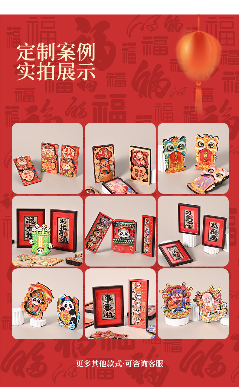 木质源头厂家定制创意2026新年摆件国风寓意磁铁强吸冰箱贴装饰品