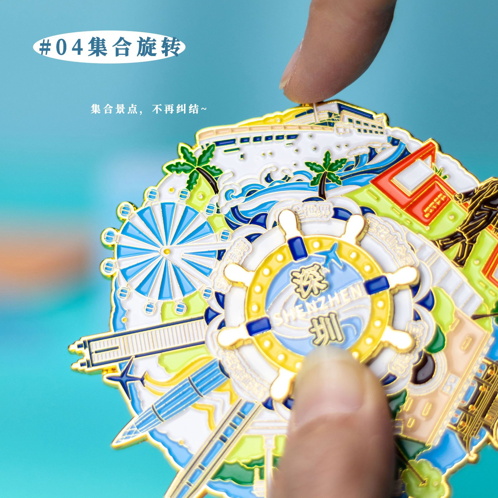 深圳金属冰箱贴城市热门旅游景点文创高级感旋转纪念品磁铁强吸