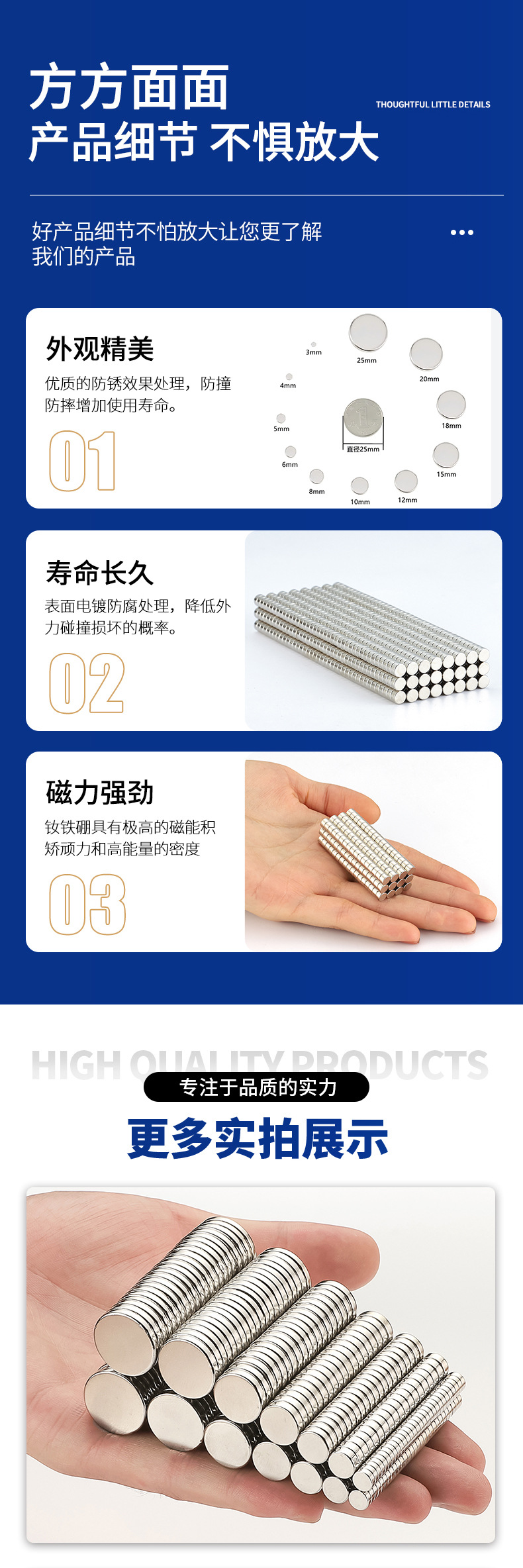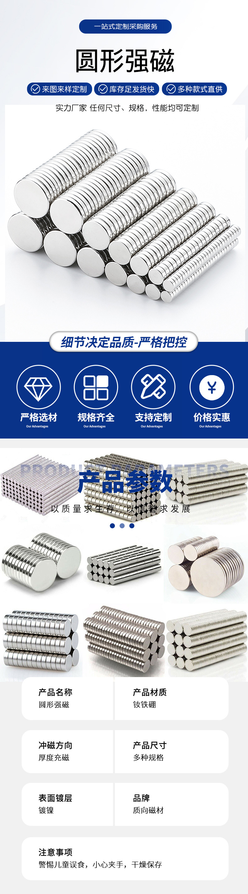 钕铁硼强 圆形磁铁片强力冰箱贴磁扣吸铁石圆片磁吸扣n52强力磁