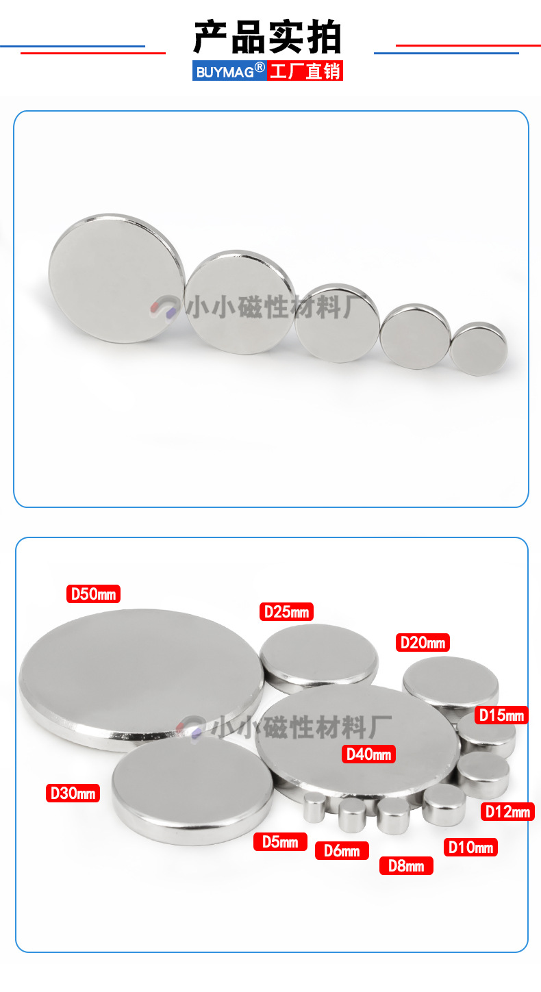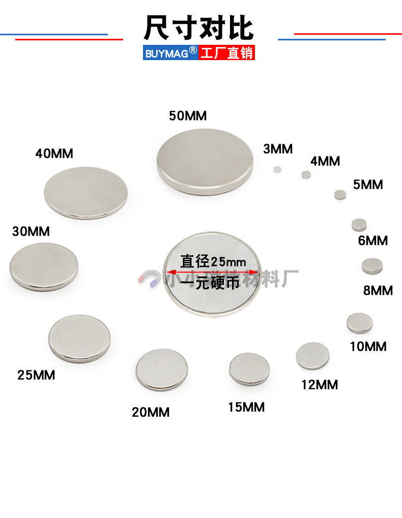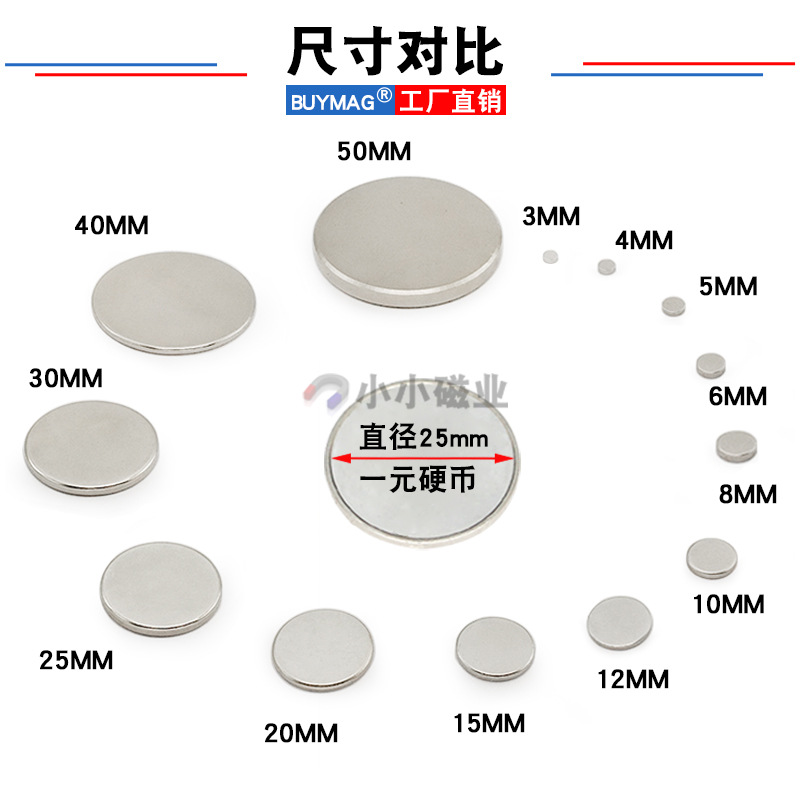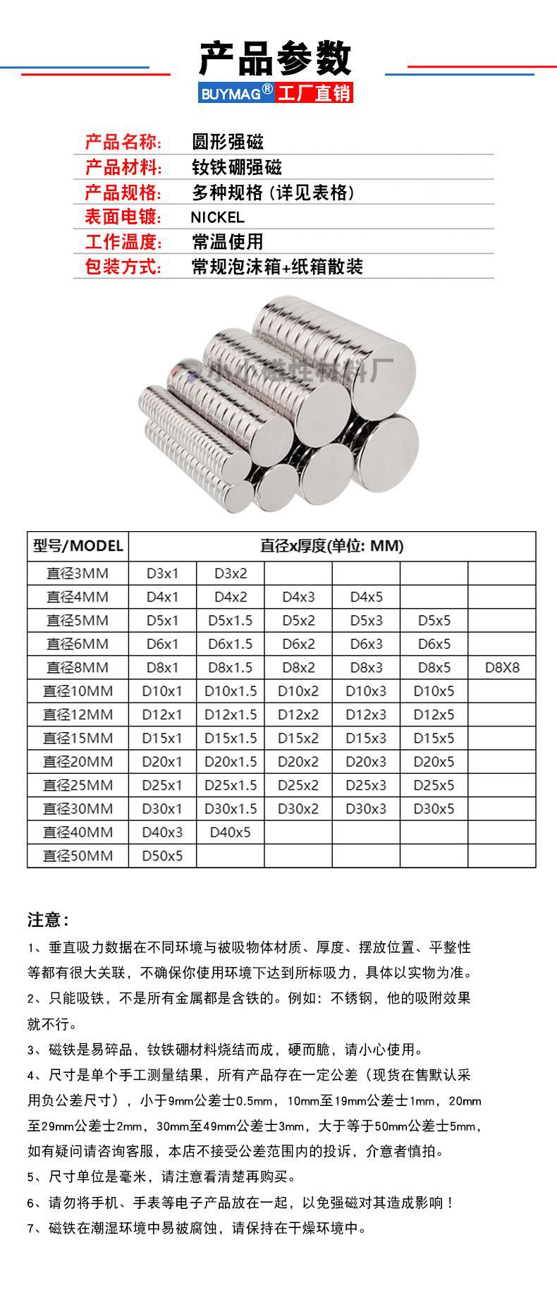 现货批发圆形磁铁强力小圆片多规格钕铁硼强磁冰箱贴磁吸小磁铁片