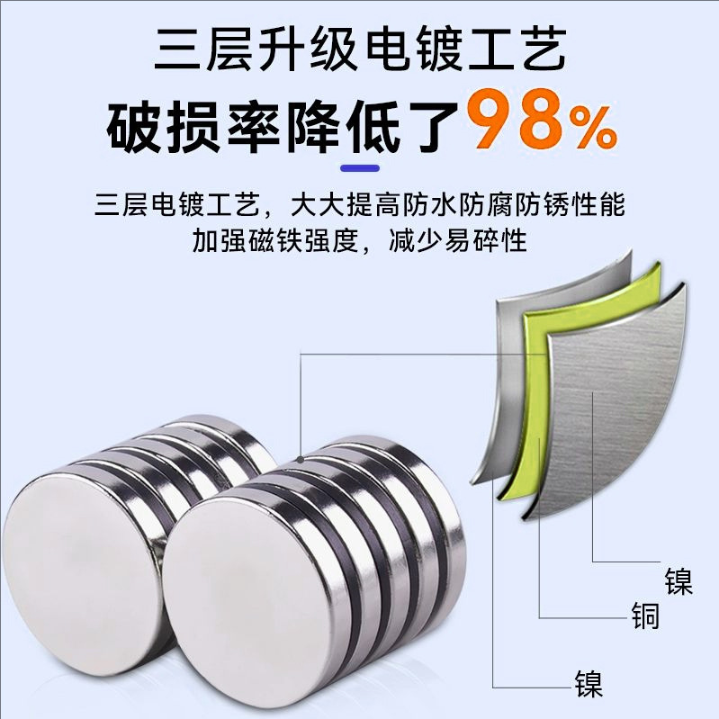 强磁厂家批发钕铁硼N35-52圆形磁铁强吸磁片冰箱贴小圆片强力磁铁