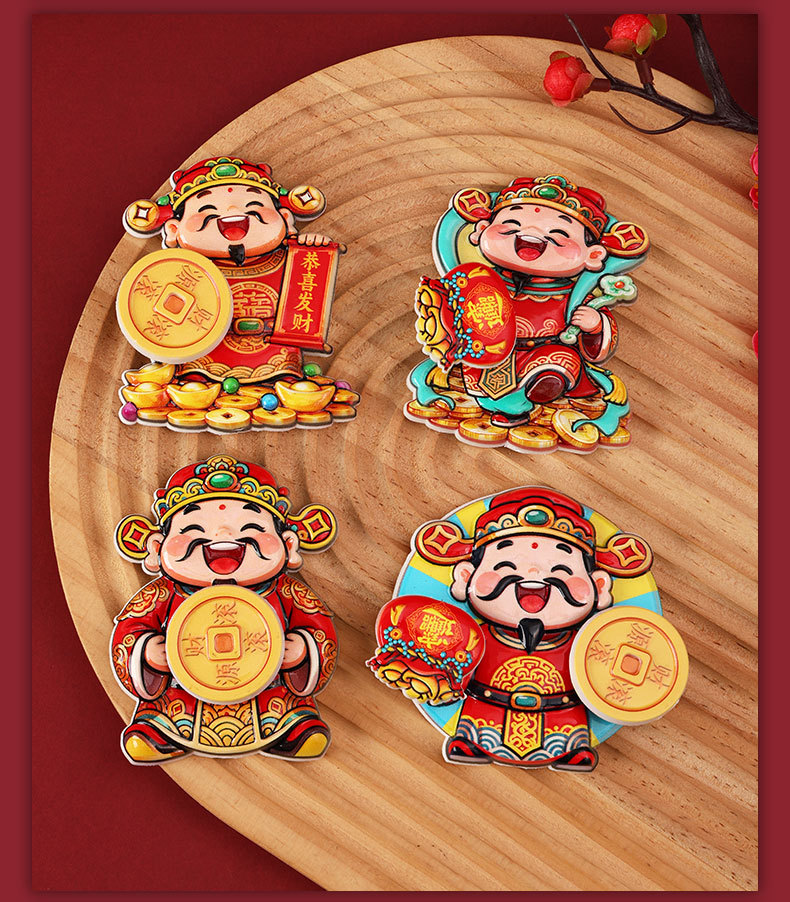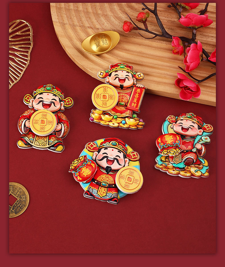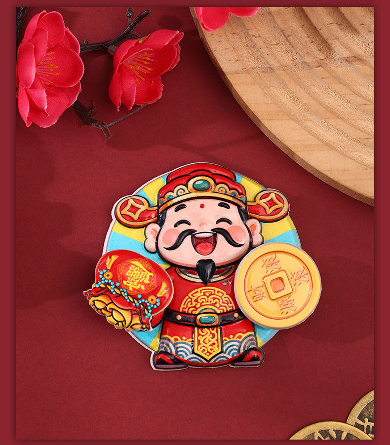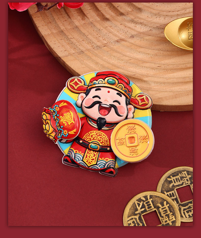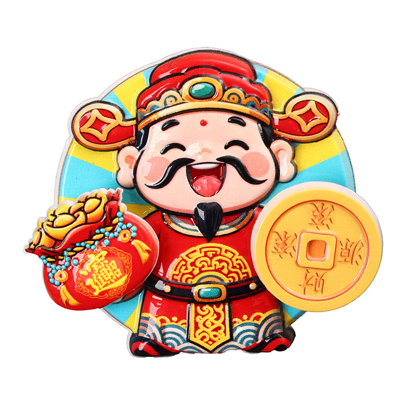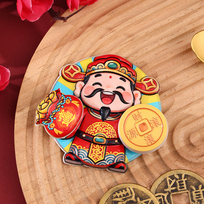 爆款双旋转财神冰箱贴国潮好运磁吸贴立体卡通喜庆财神爷磁力贴