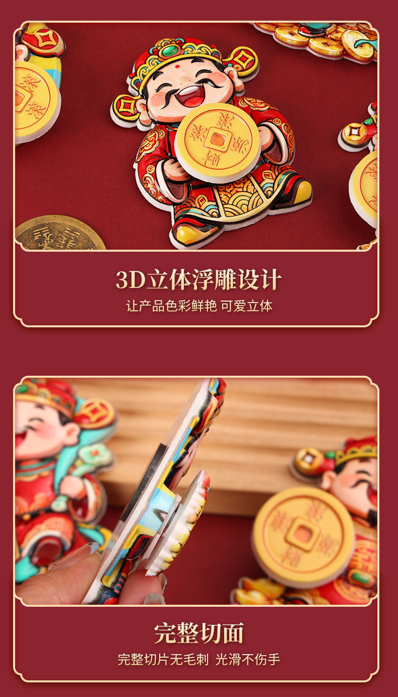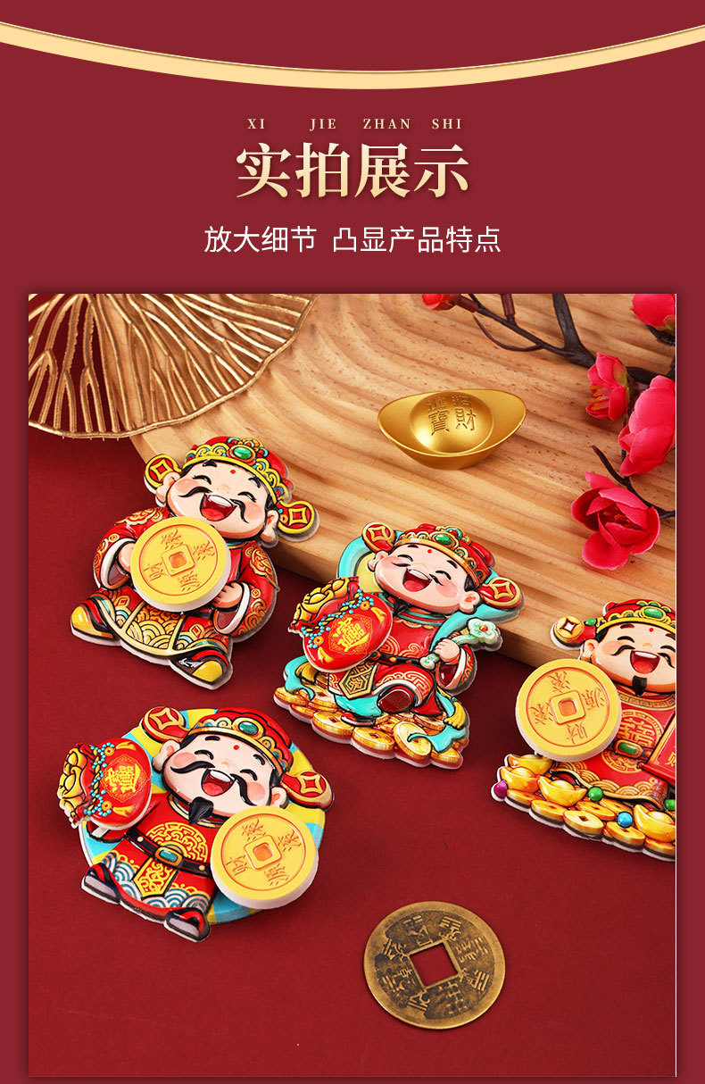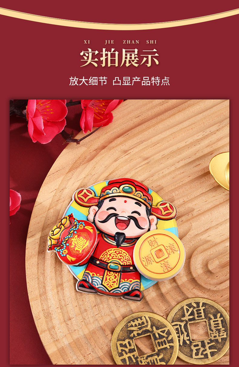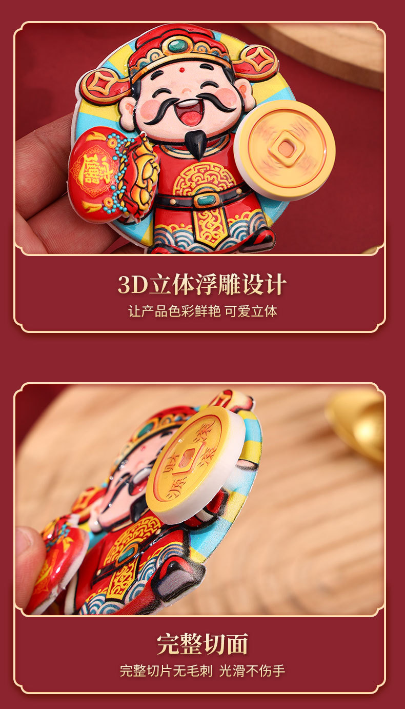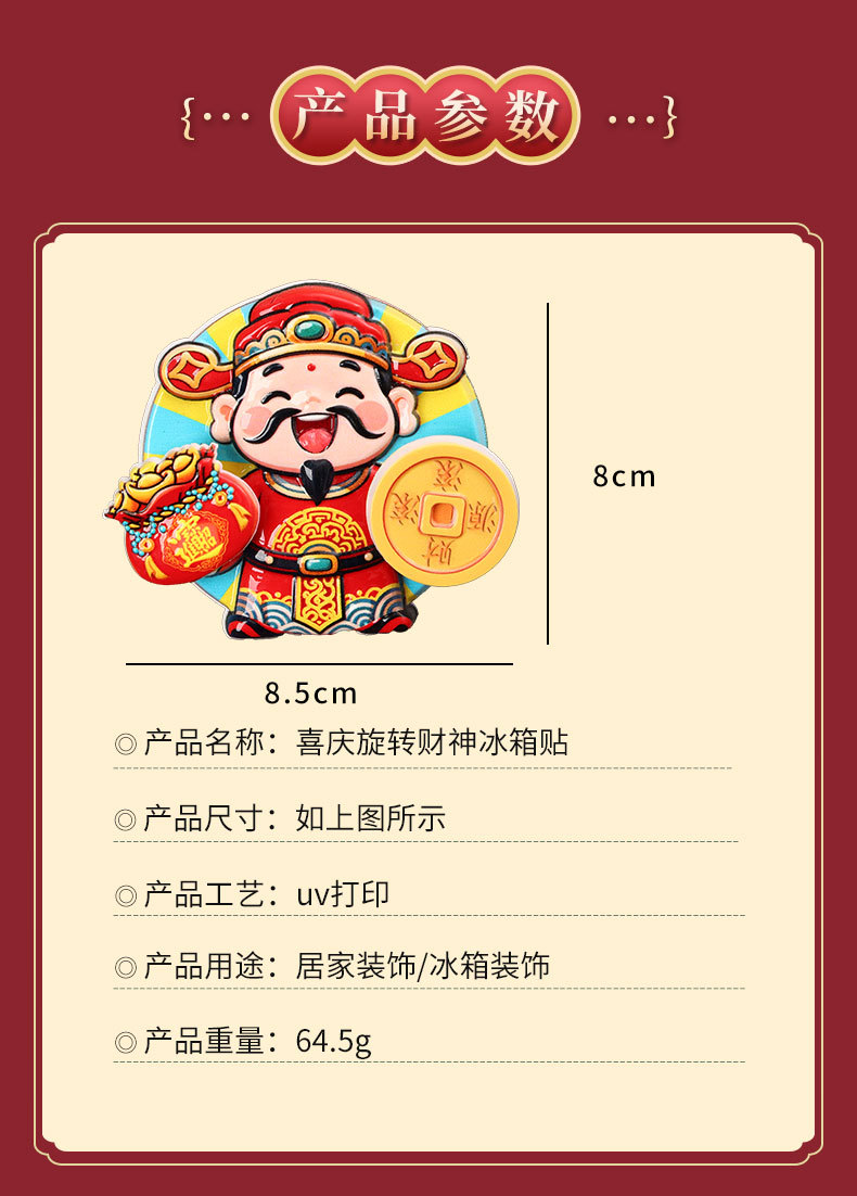 爆款双旋转财神冰箱贴国潮好运磁吸贴立体卡通喜庆财神爷磁力贴