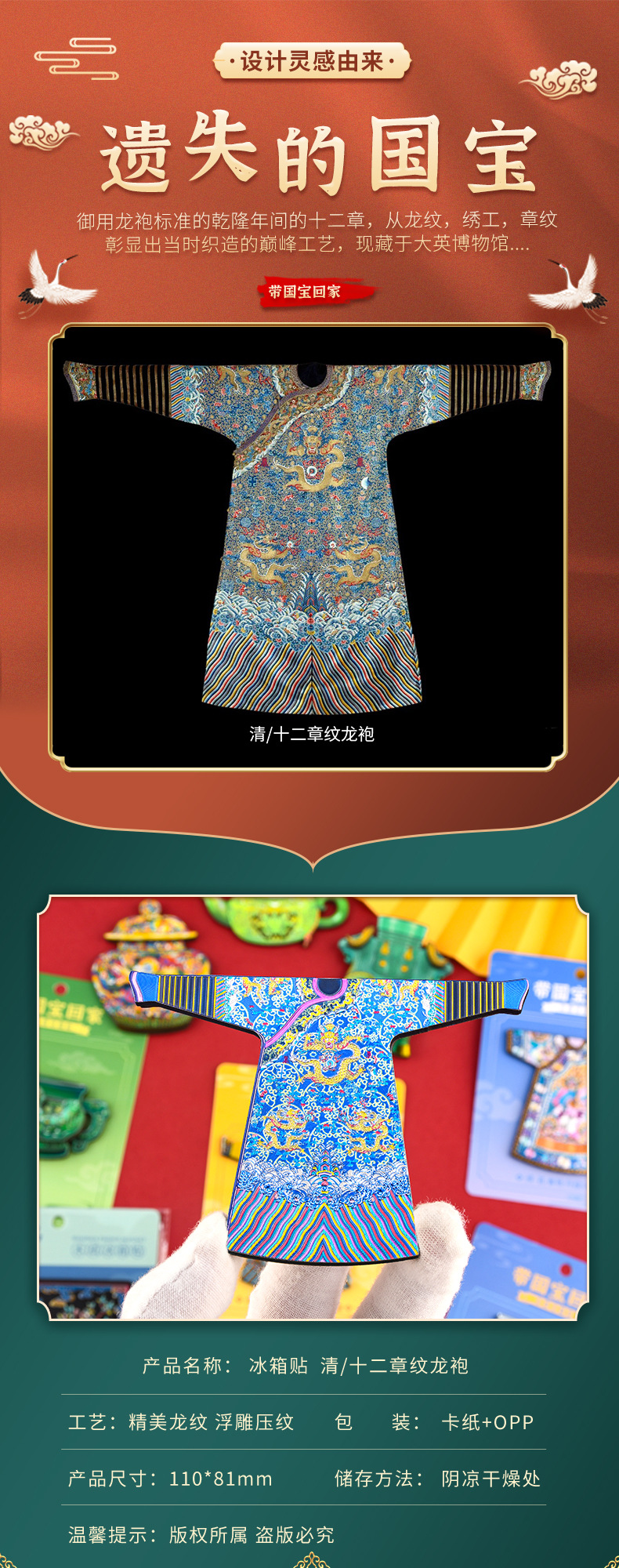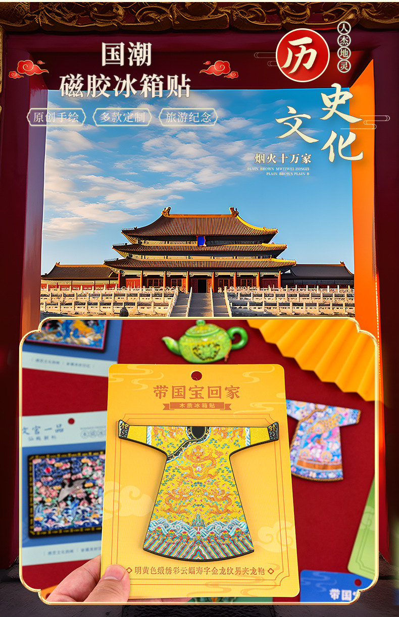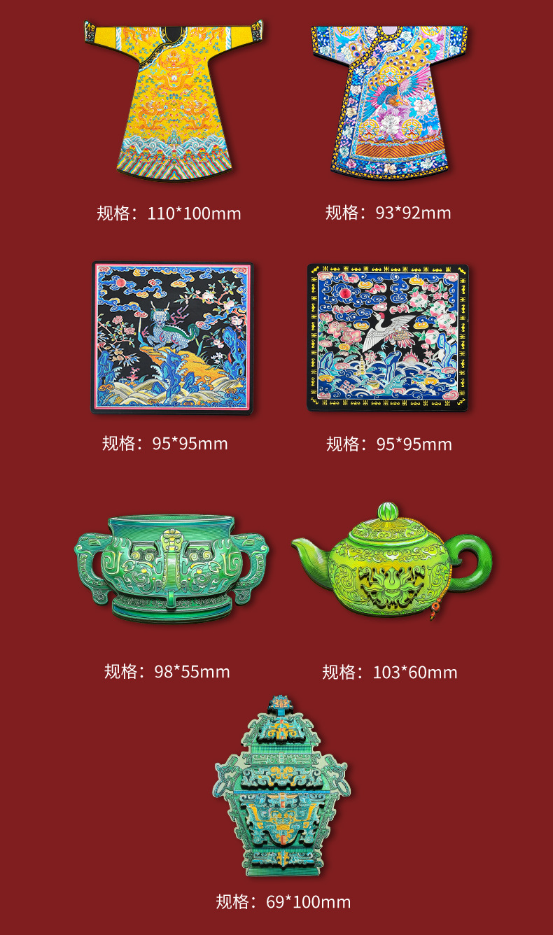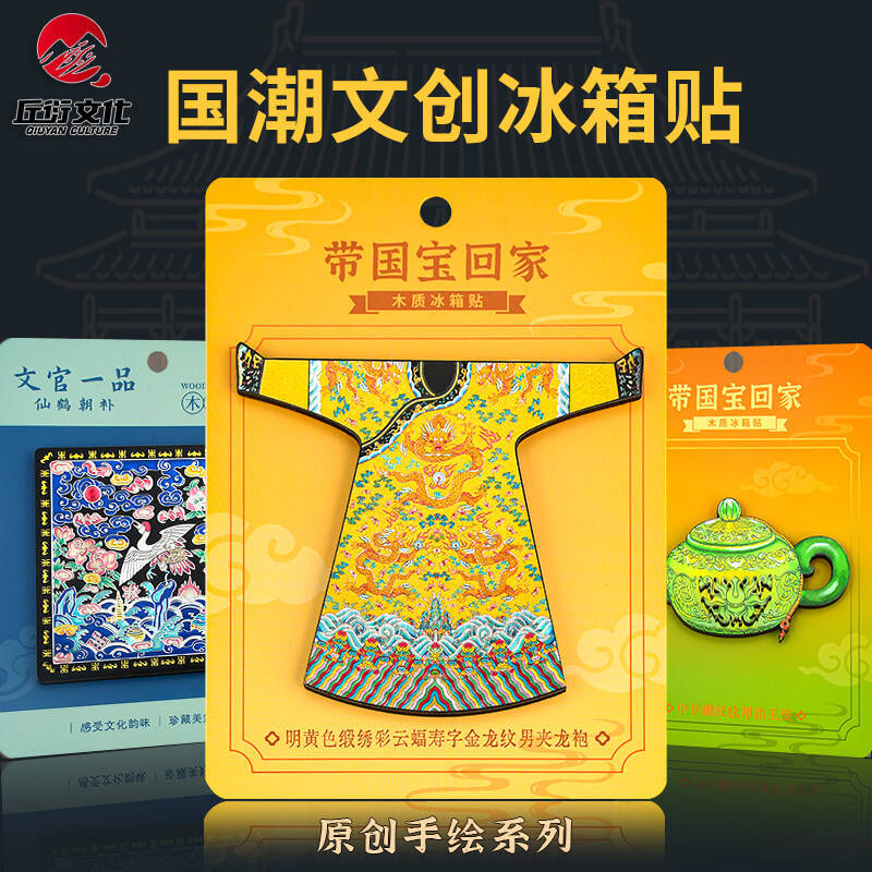 博物馆文创木质冰箱贴国宝故宫龙袍文物景泰蓝云龙纹罐国潮礼品