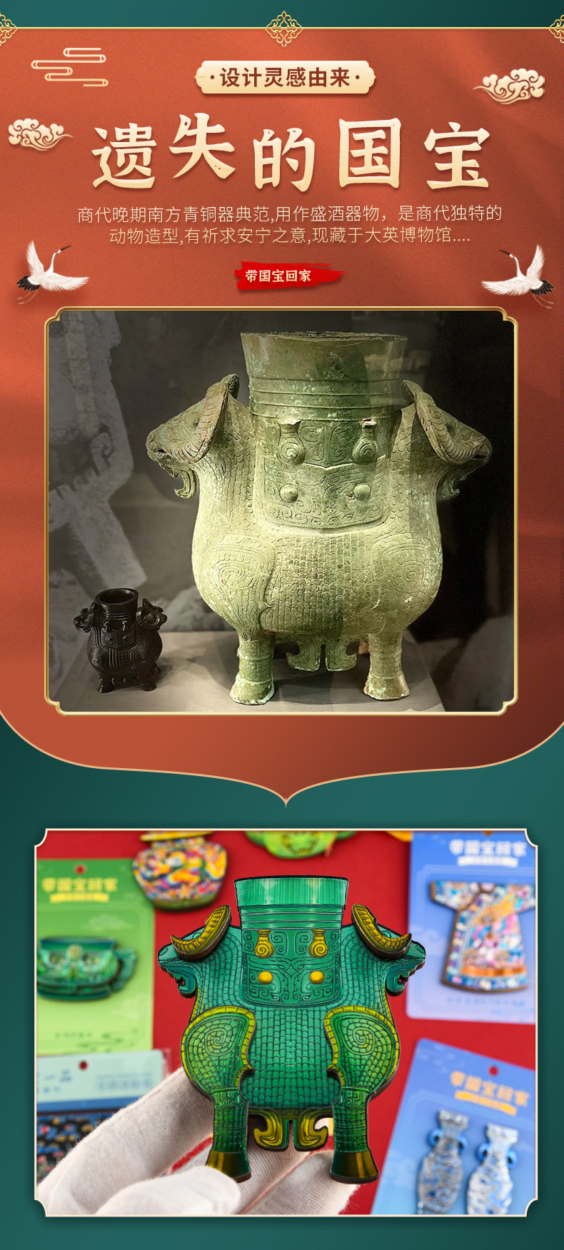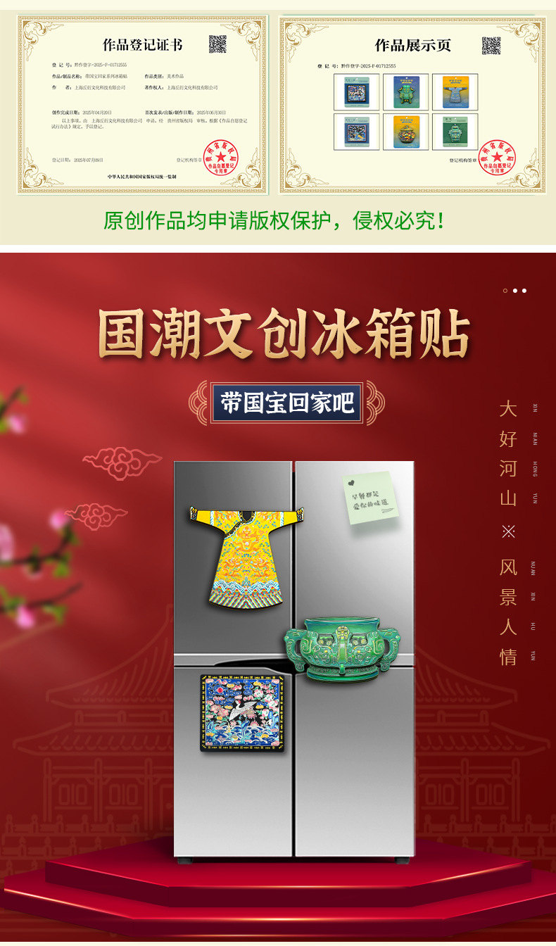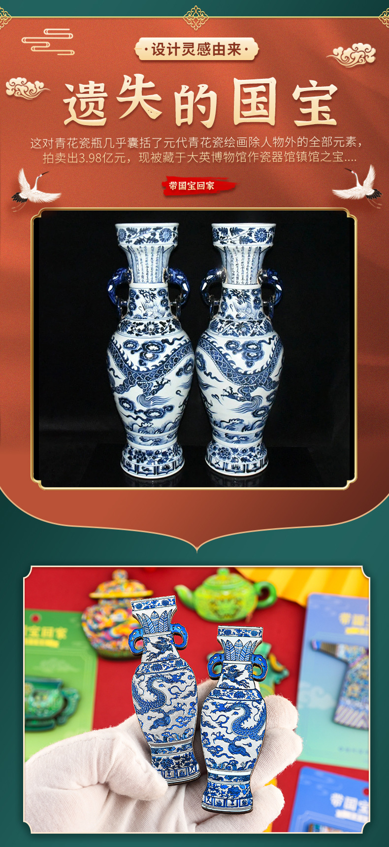 博物馆文创木质冰箱贴国宝故宫龙袍文物景泰蓝云龙纹罐国潮礼品