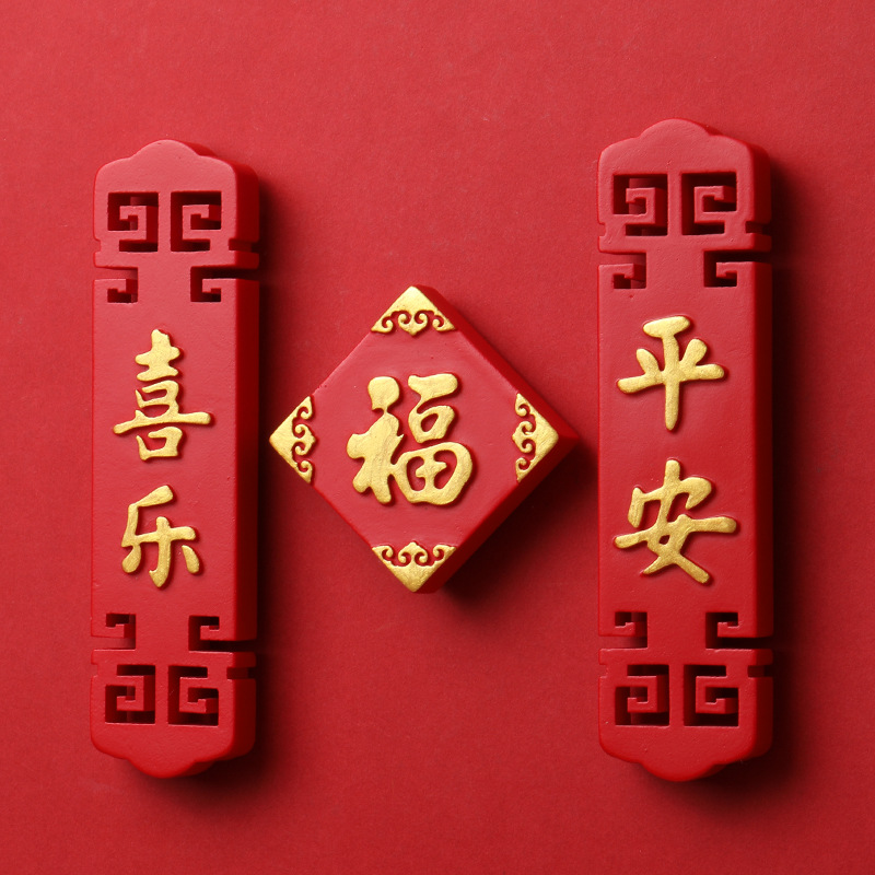 中国风平安喜乐福字字牌冰箱贴磁贴2025新年蛇年装饰品磁吸吸铁石