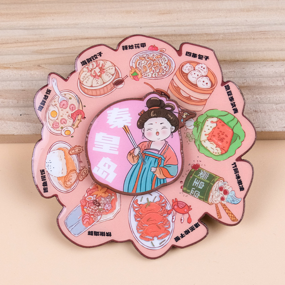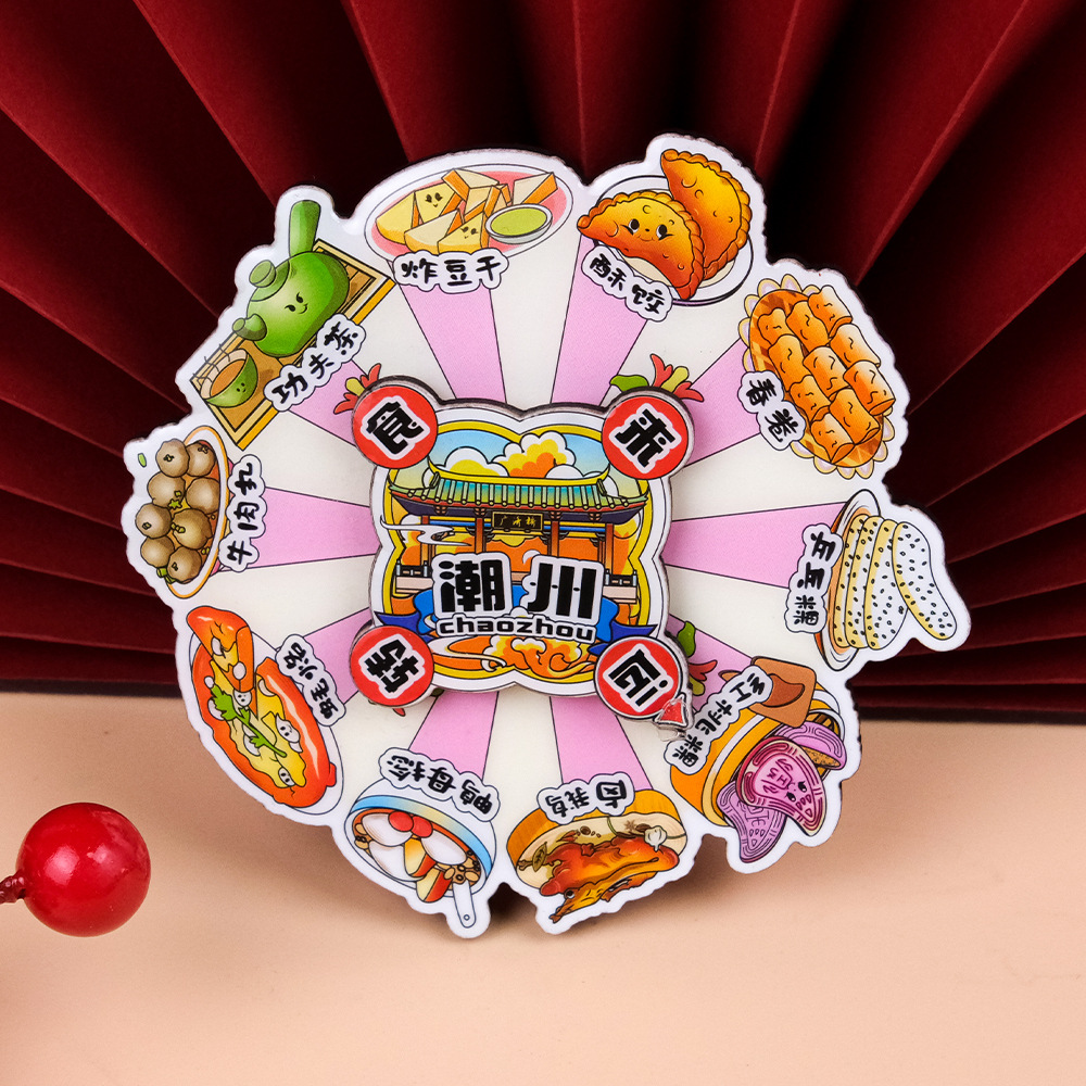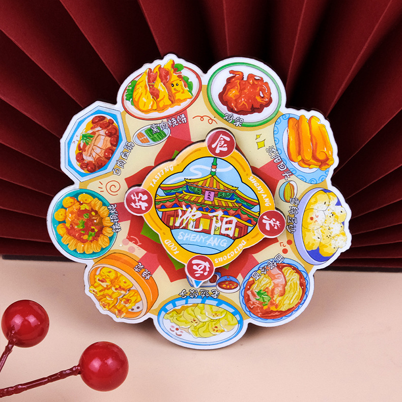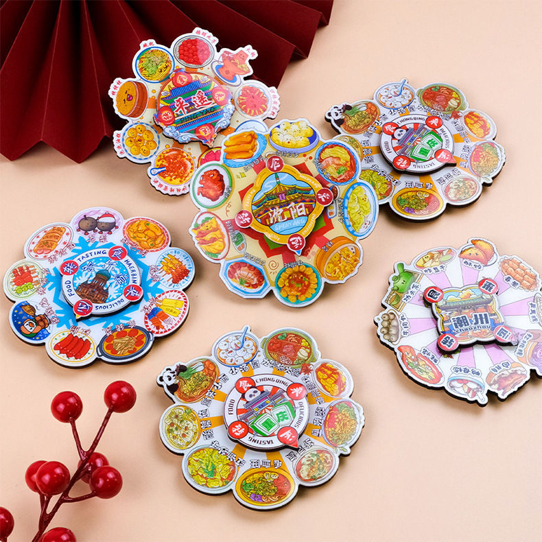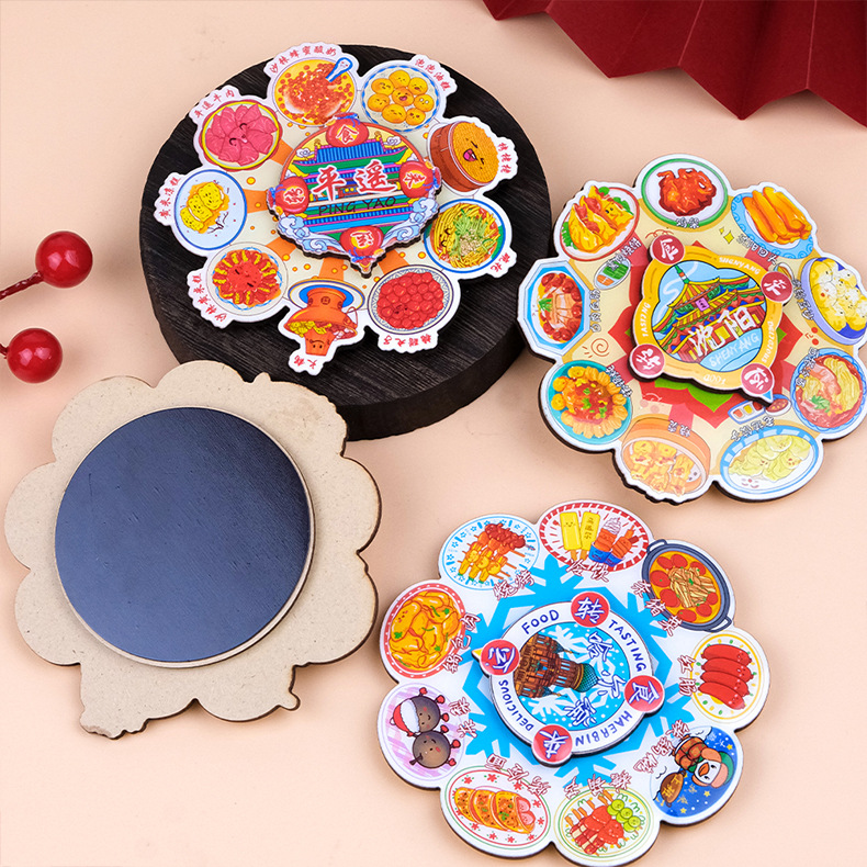 美食转盘冰箱贴中国风旋转卡通磁吸贴文创国潮纪念品创意圆盘磁贴