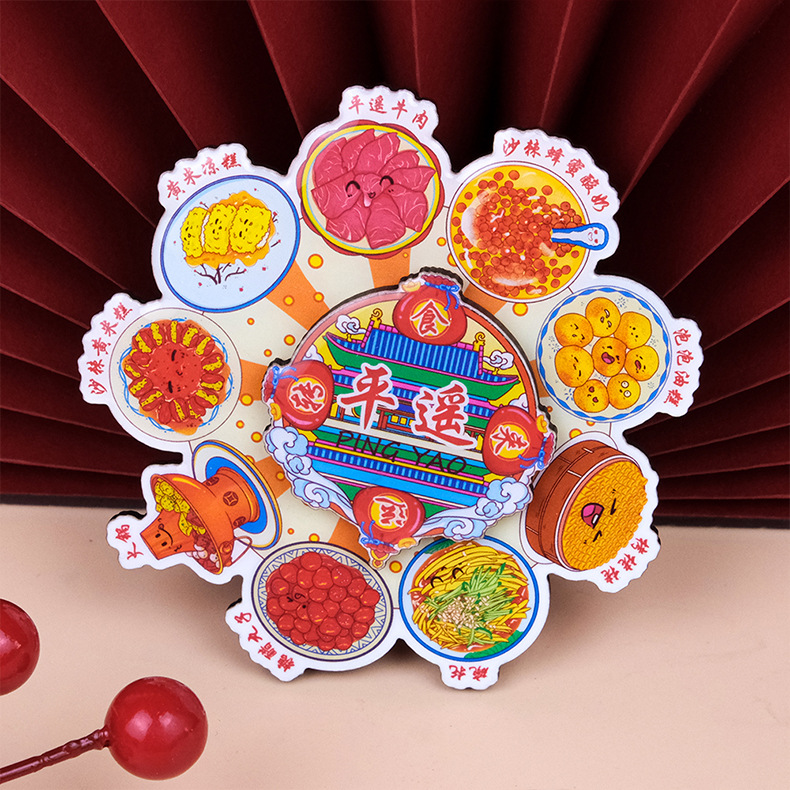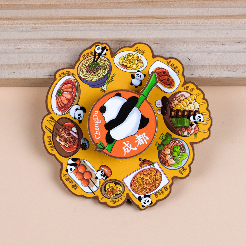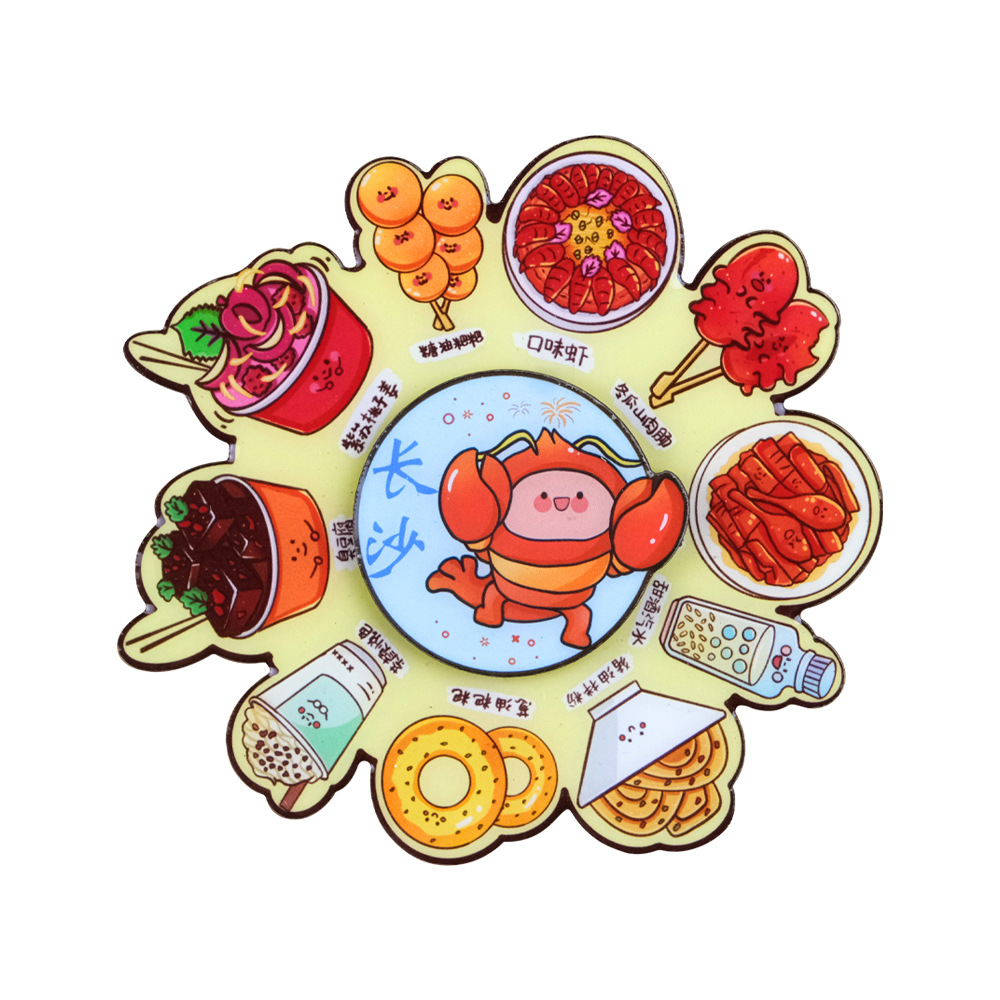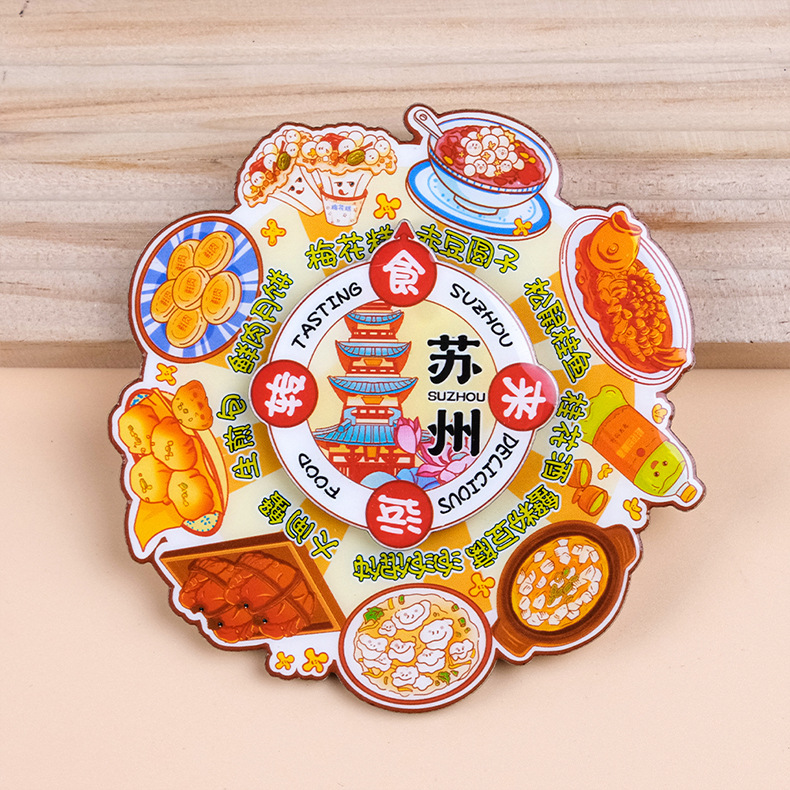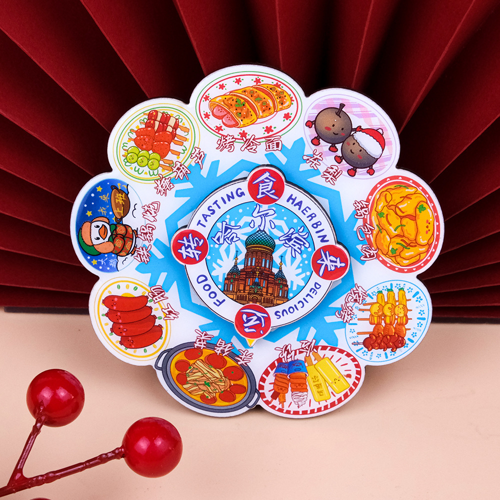 美食转盘冰箱贴中国风旋转卡通磁吸贴文创国潮纪念品创意圆盘磁贴