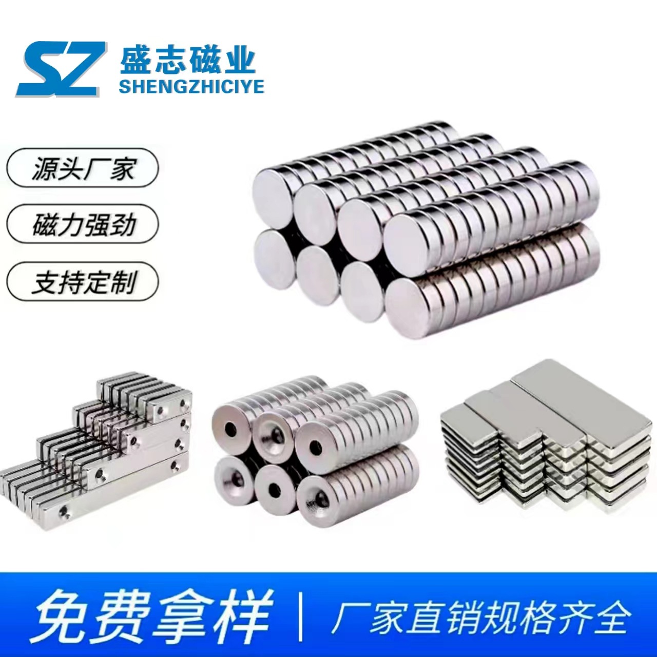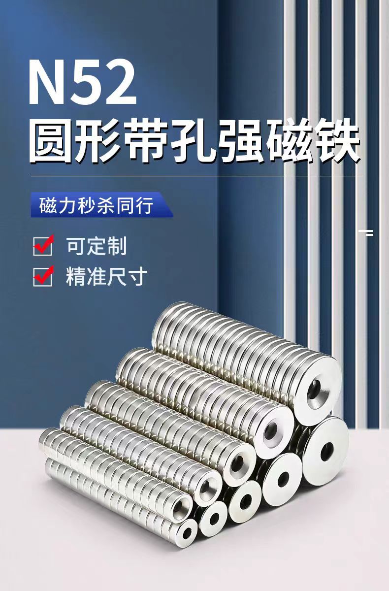 强力磁铁厂家批发钕铁硼磁铁圆形磁铁片磁吸打孔圆片冰箱贴吸铁石