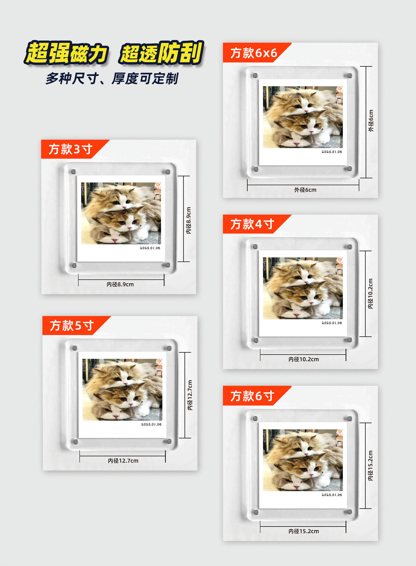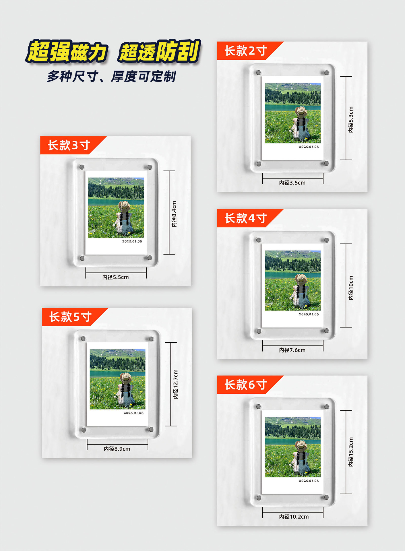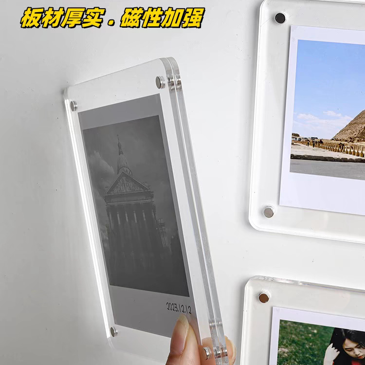 亚克力拍立得磁吸相框旅游照片冰箱贴透明展示框小卡相纸强吸