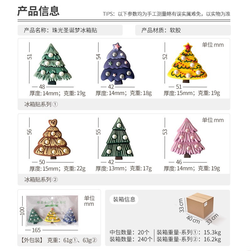 新款圣诞节冰箱贴装饰树diy强吸软磁平安夜3D立体ins磁吸卡通磁贴