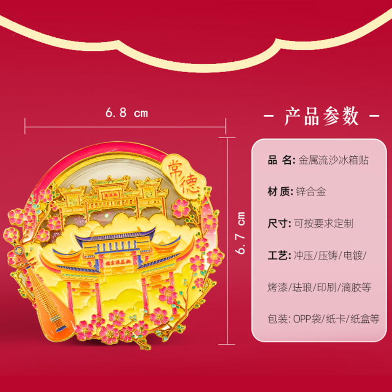常德金属冰箱贴磁贴强吸工艺品旅游纪念品文创小礼品流沙创意磁贴